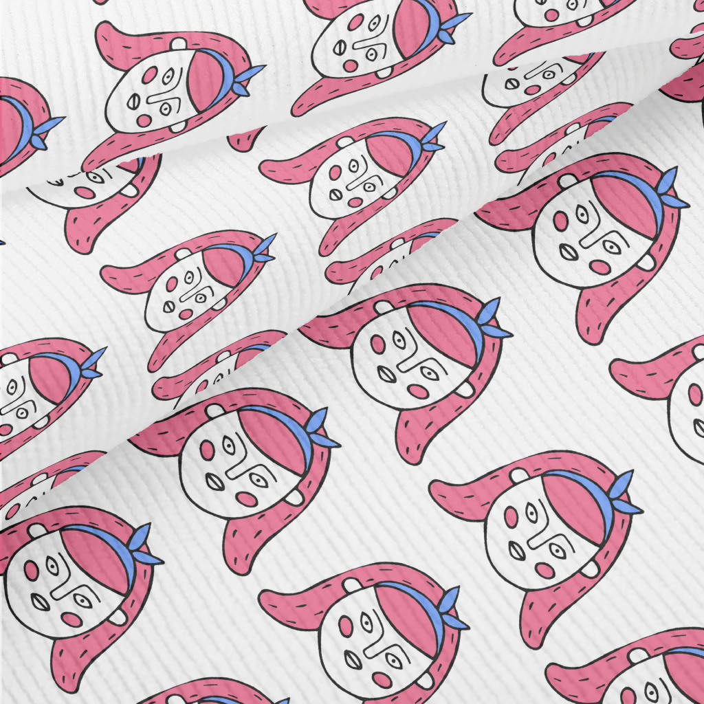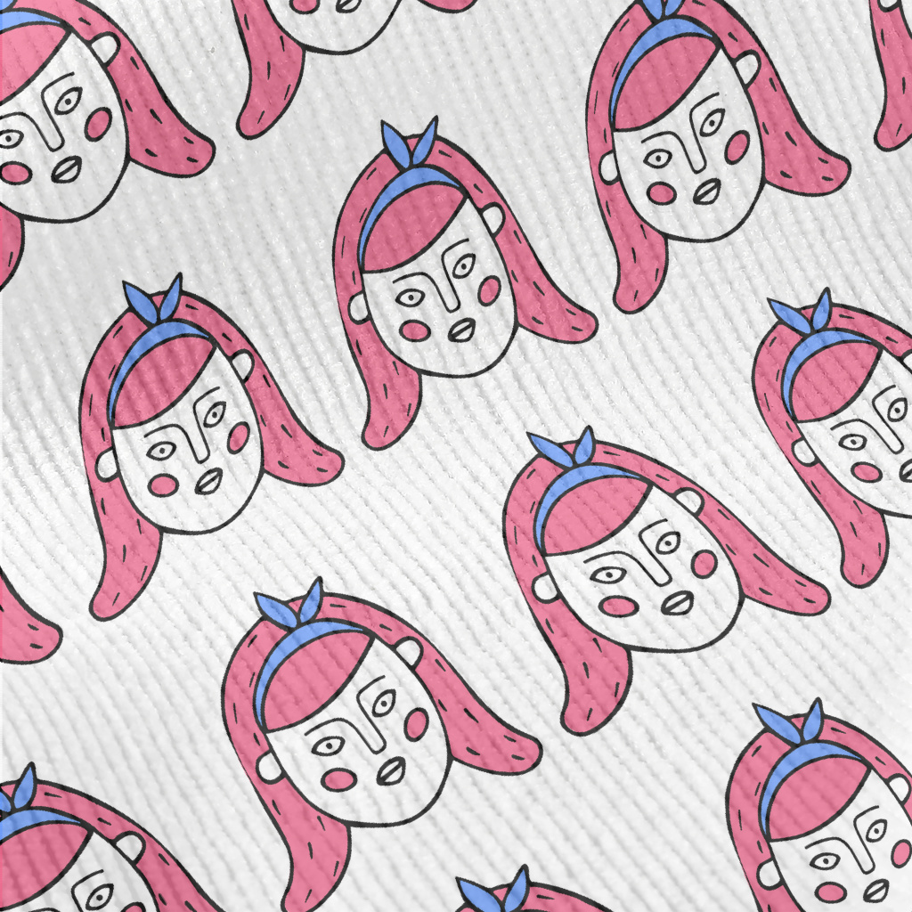 卡通風格的可愛女人臉燈芯絨(幅寬150公分)