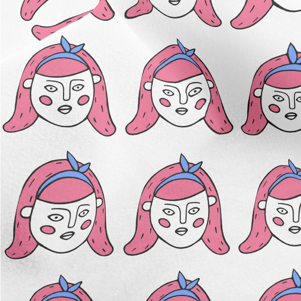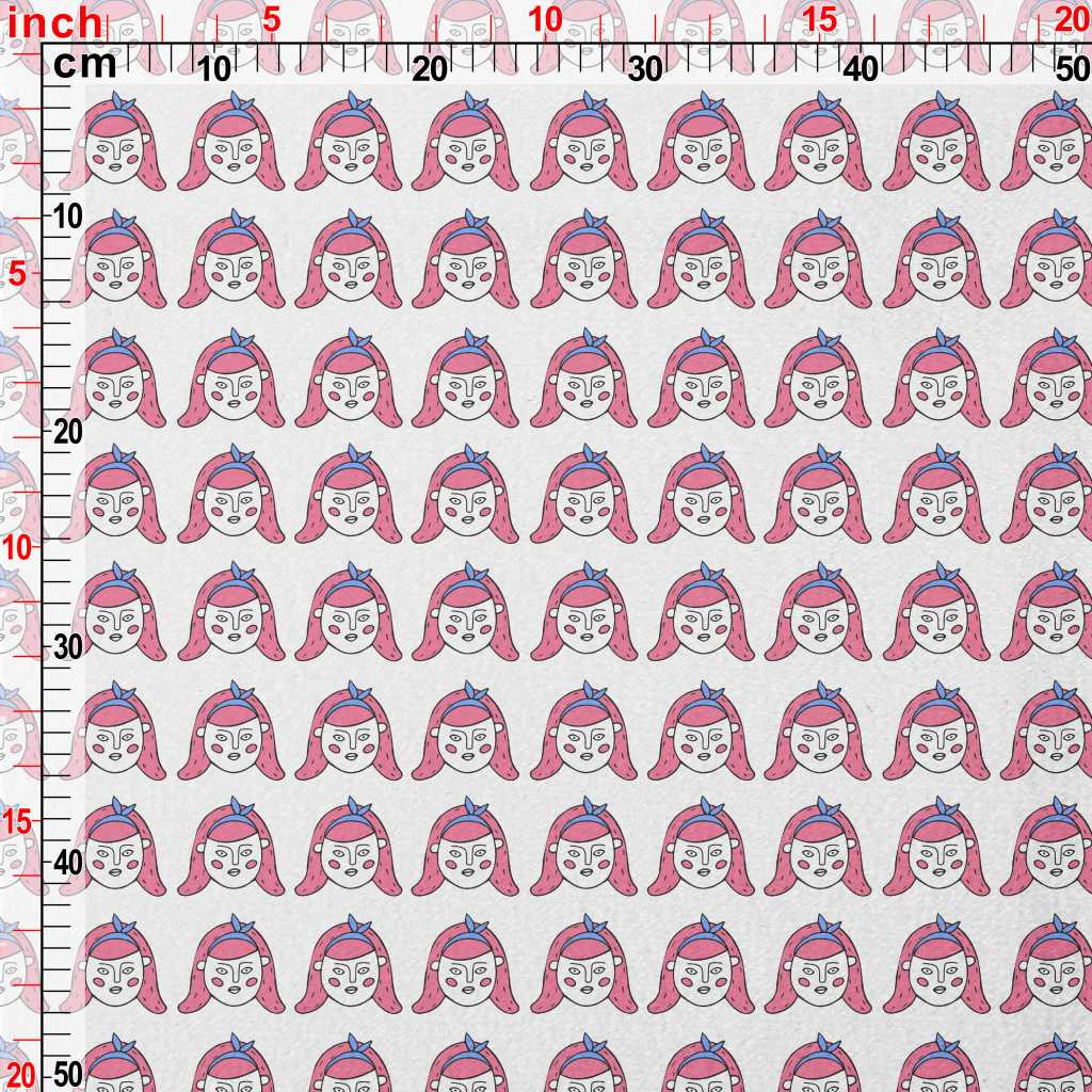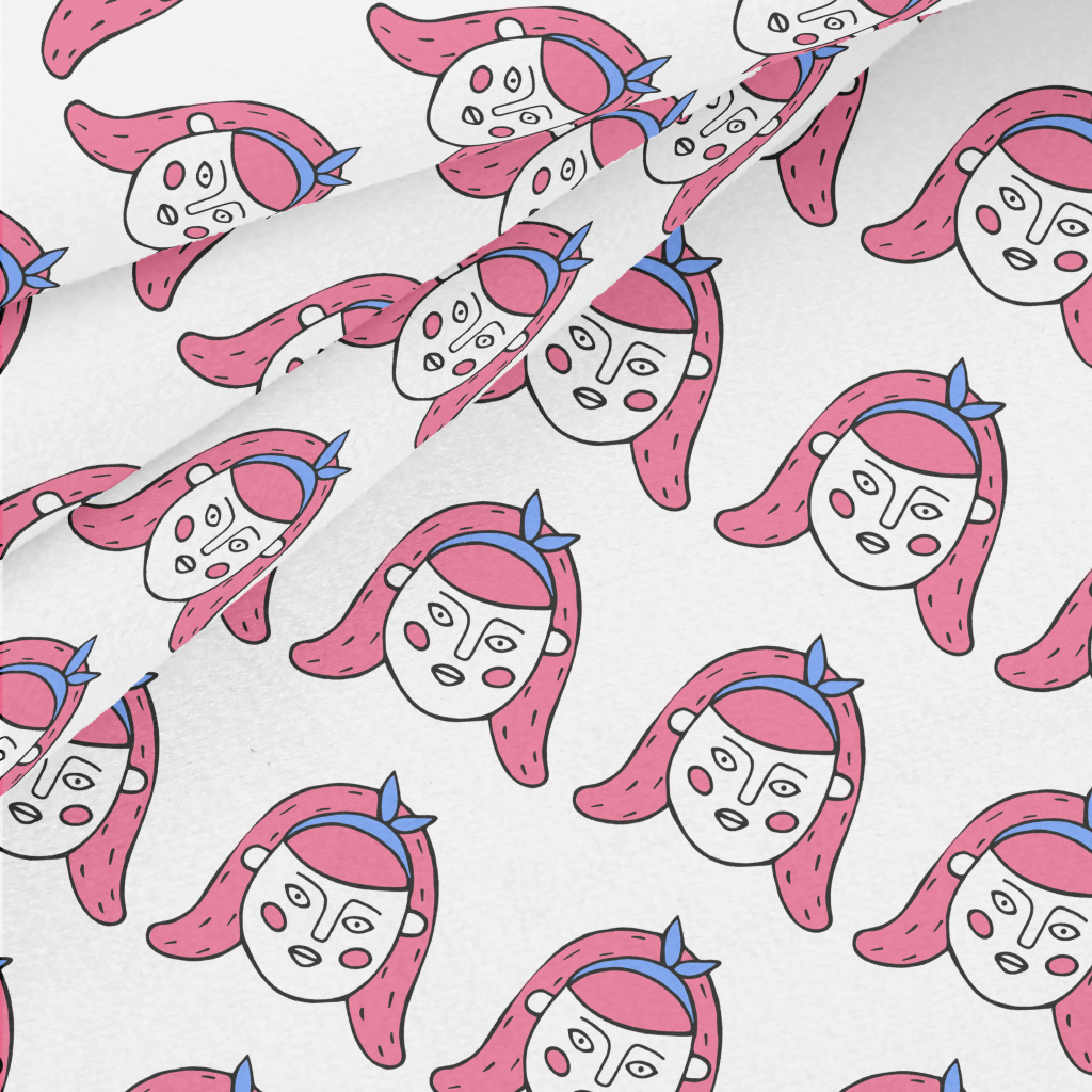 卡通風格的可愛女人臉水晶絨(幅寬160公分)
