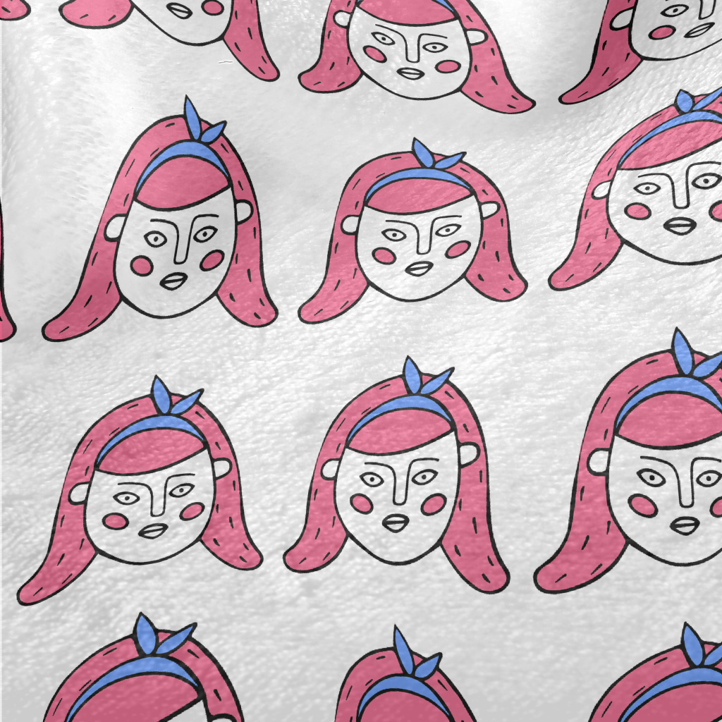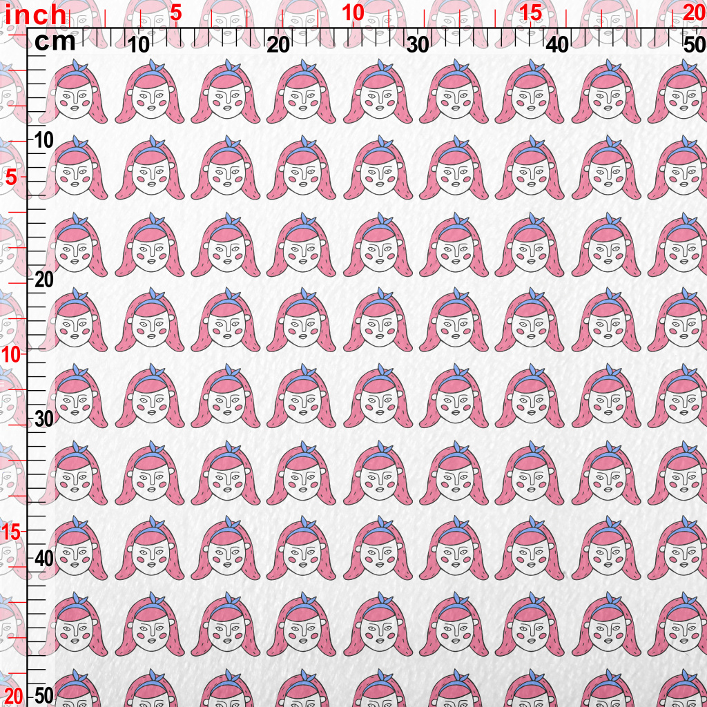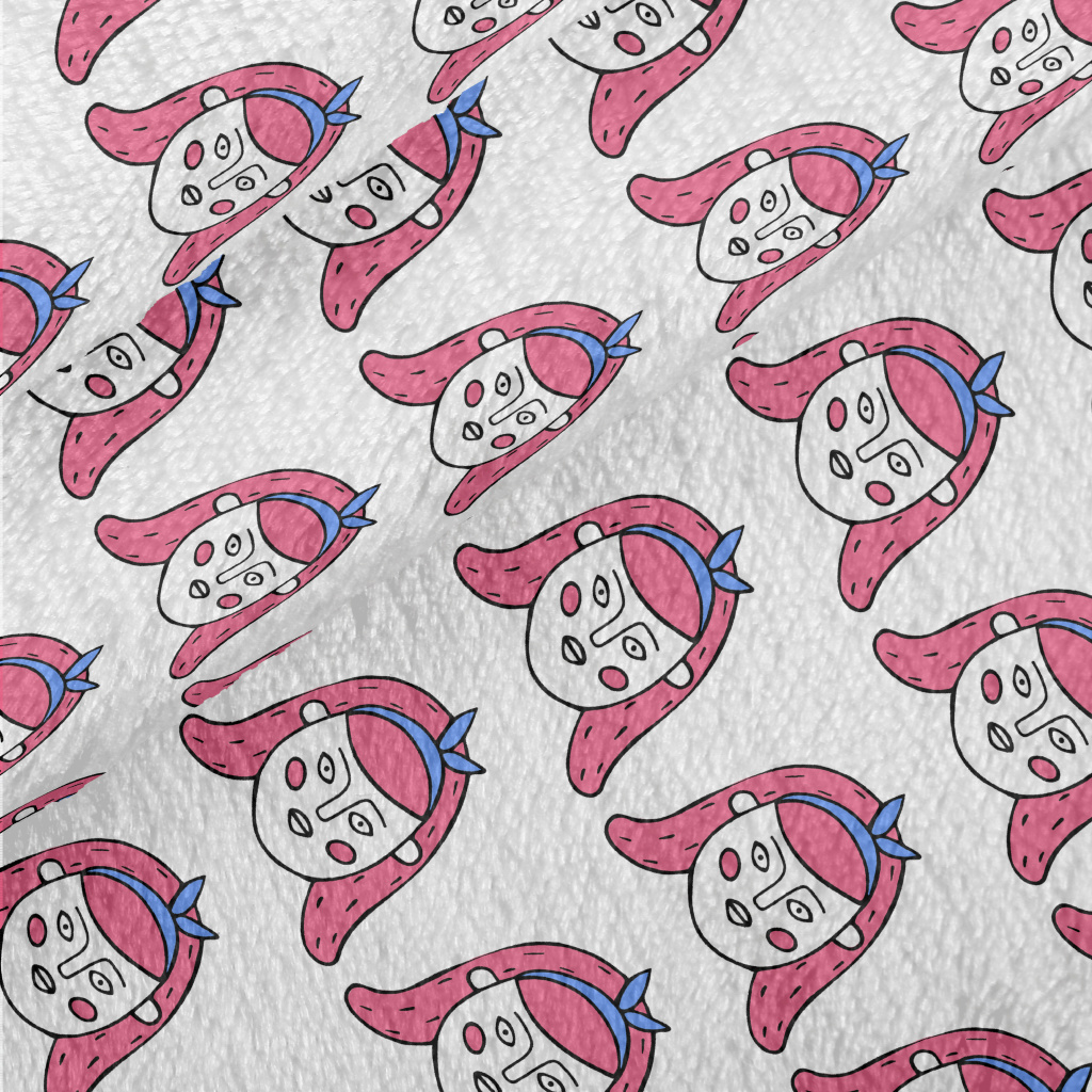 卡通風格的可愛女人臉法蘭絨(幅寬150公分)