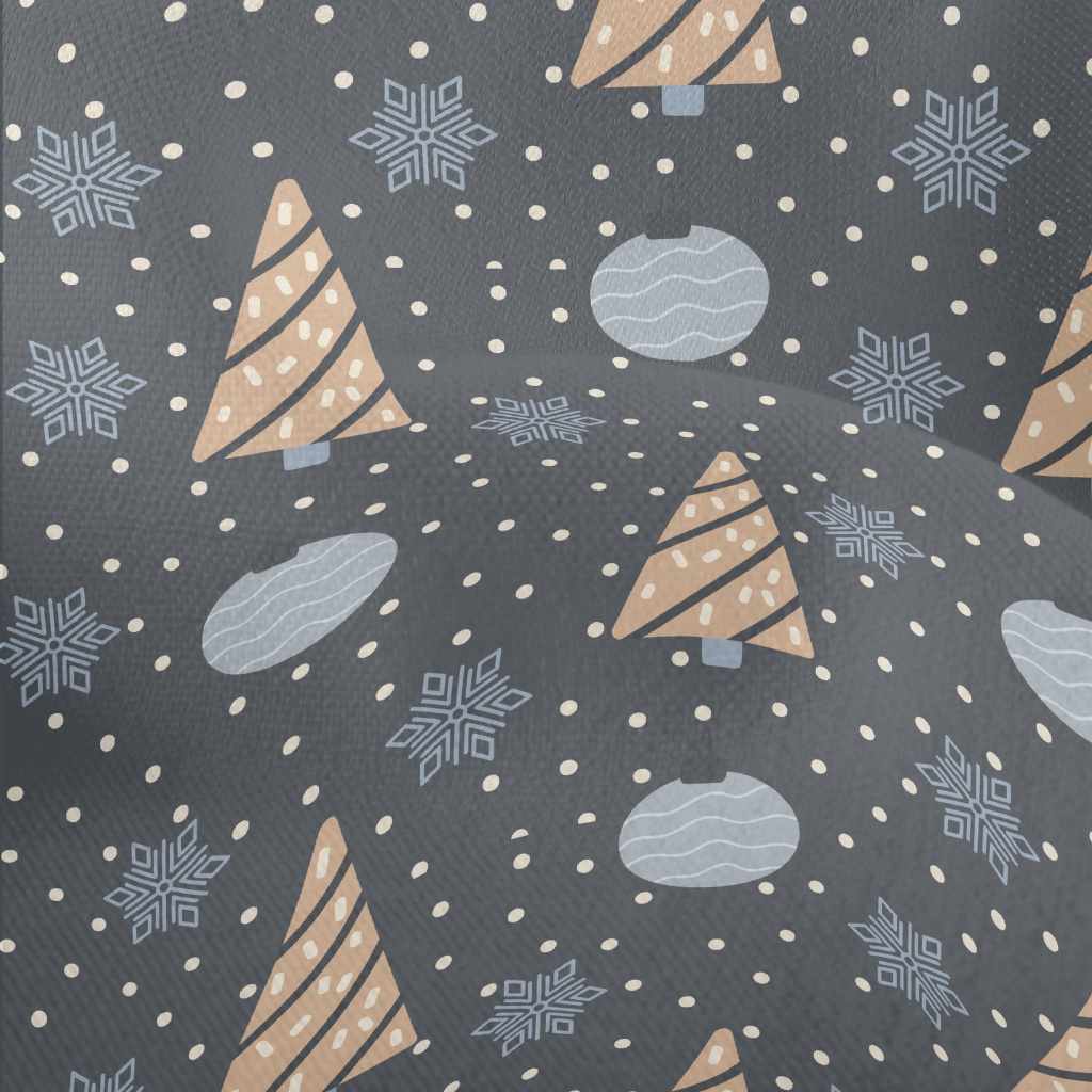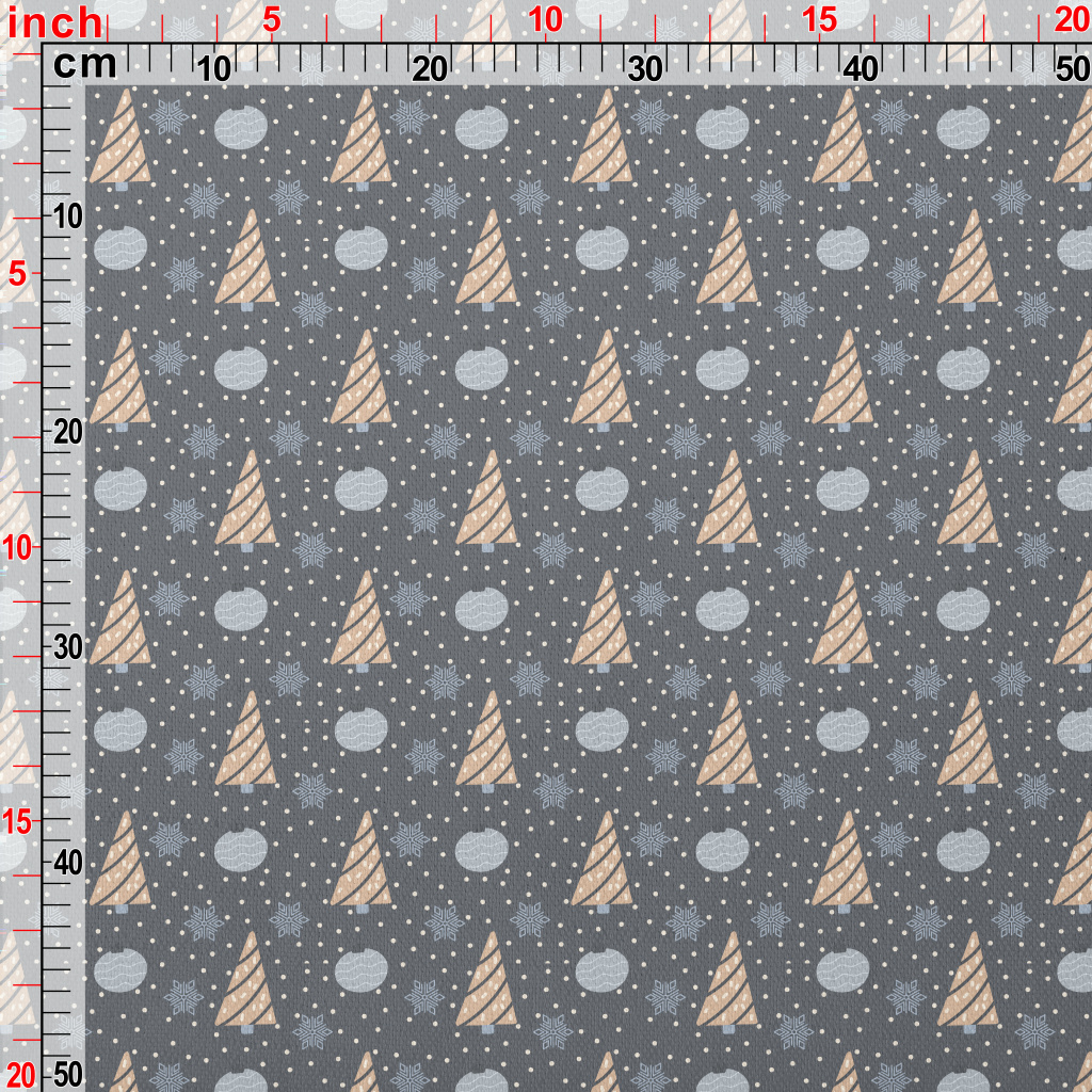 聖誕樹和雪花裝飾球竹節麻(幅寬150公分)