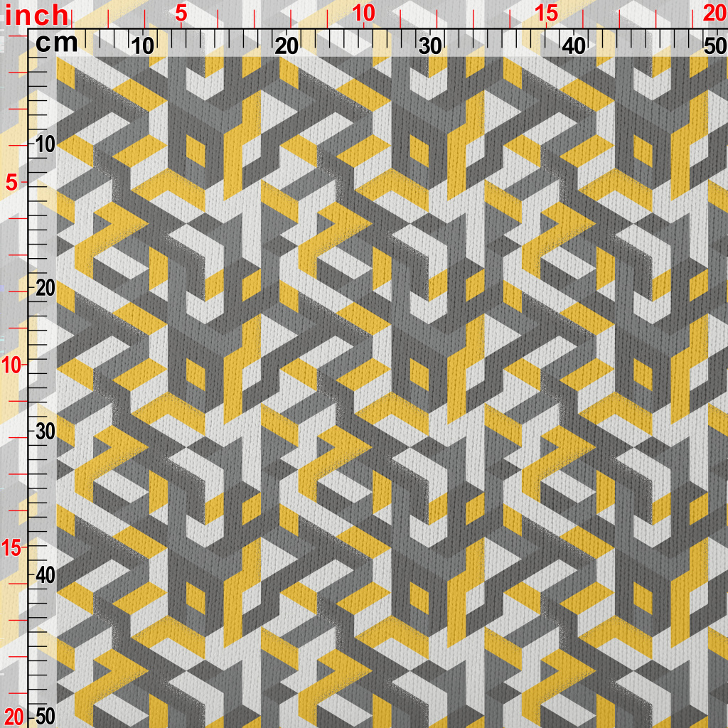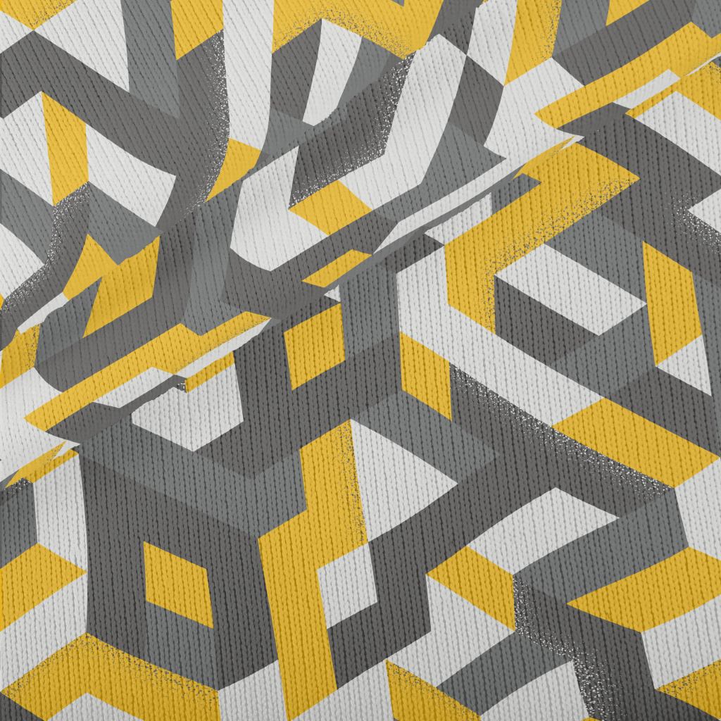 灰黃色線條幾何圖案仿毛衣布(幅寬150公分)