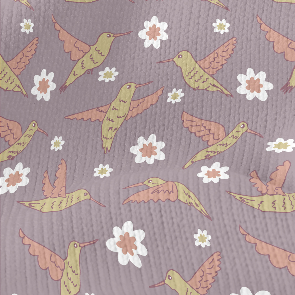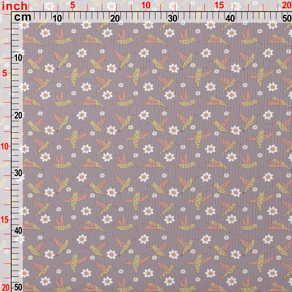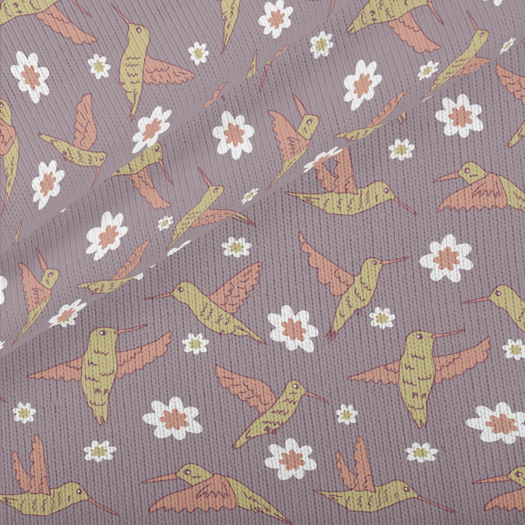 手繪塗鴉蜂鳥和花朵仿毛衣布(幅寬150公分)