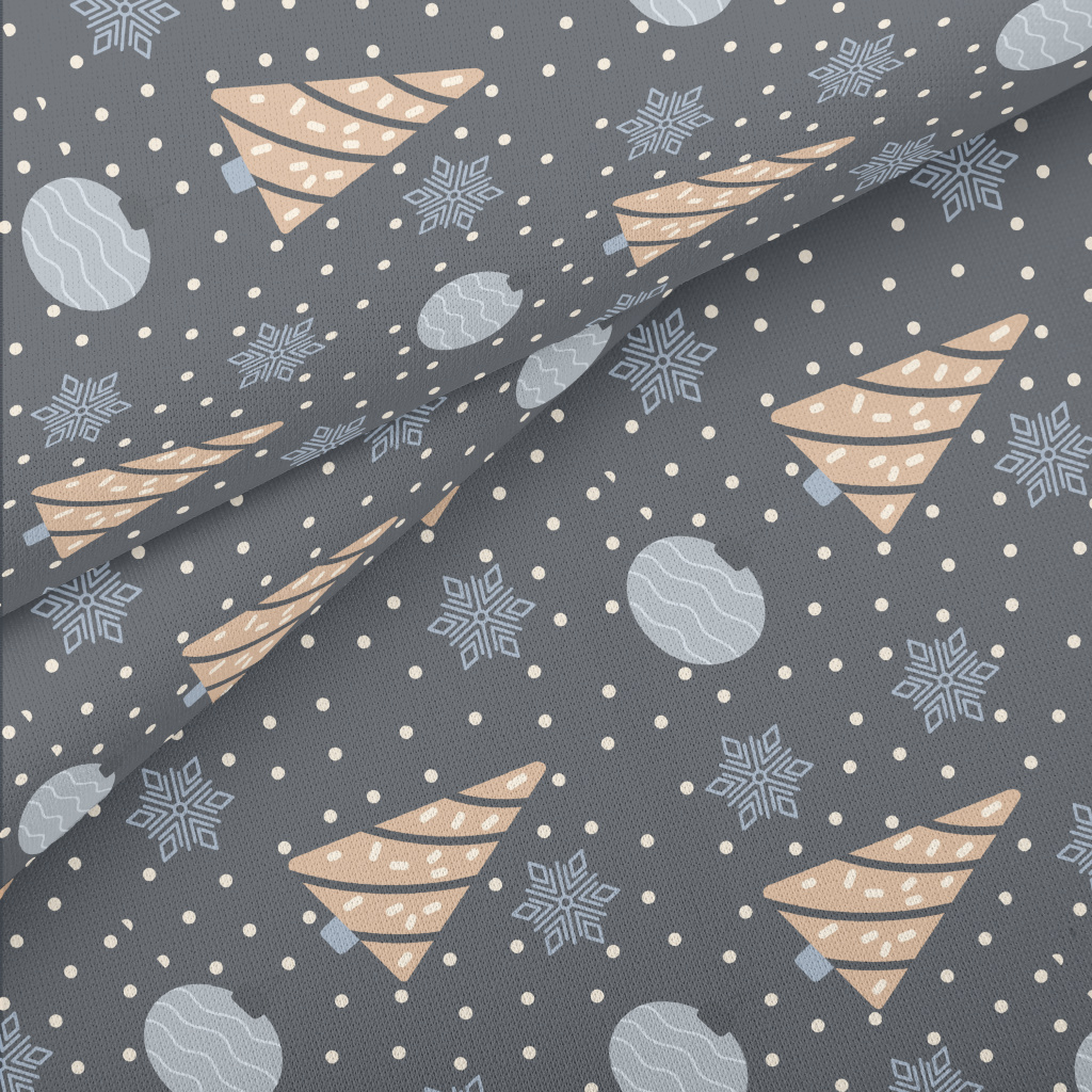 聖誕樹和雪花裝飾球薄棉布(幅寬150公分)