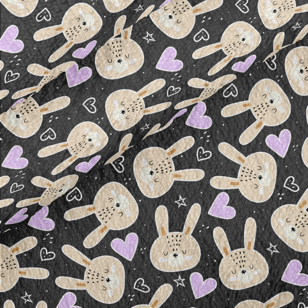 休眠閉眼兔子和愛心法蘭絨(幅寬150公分)