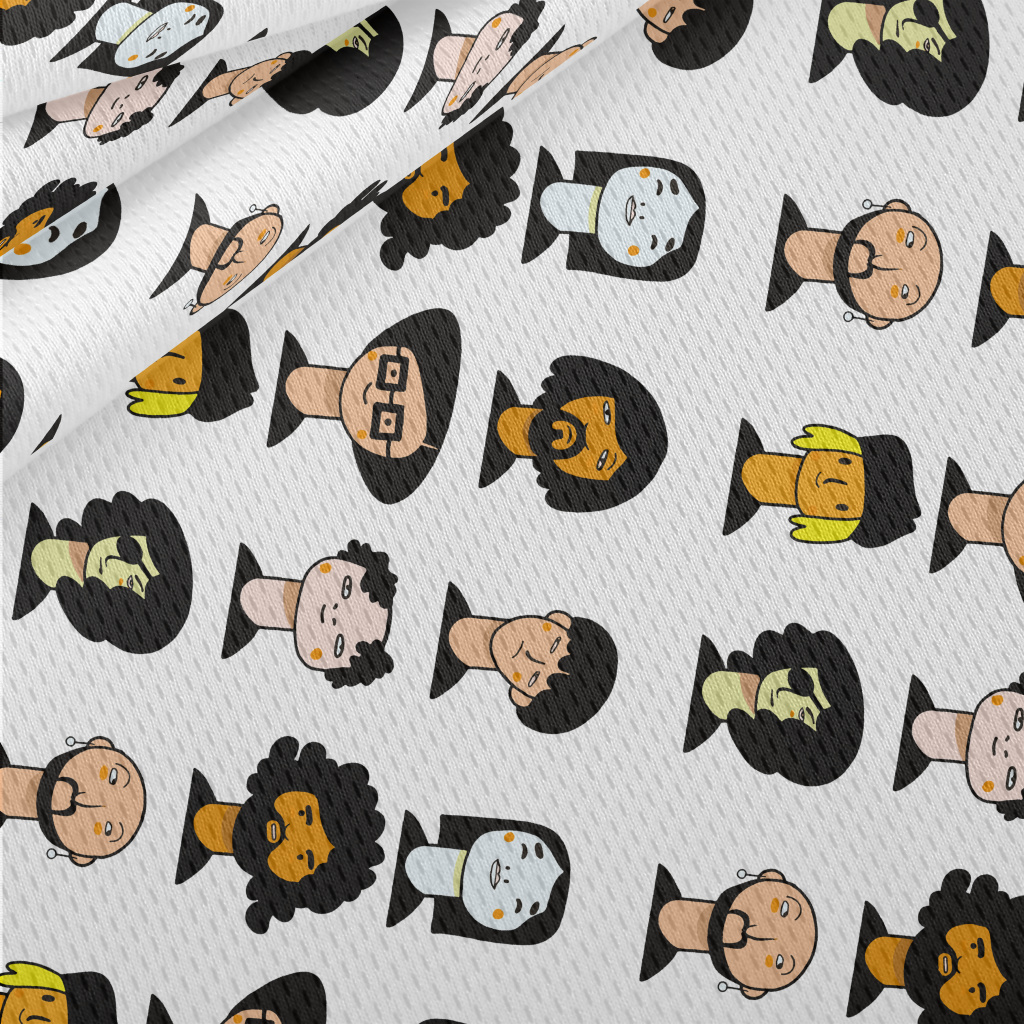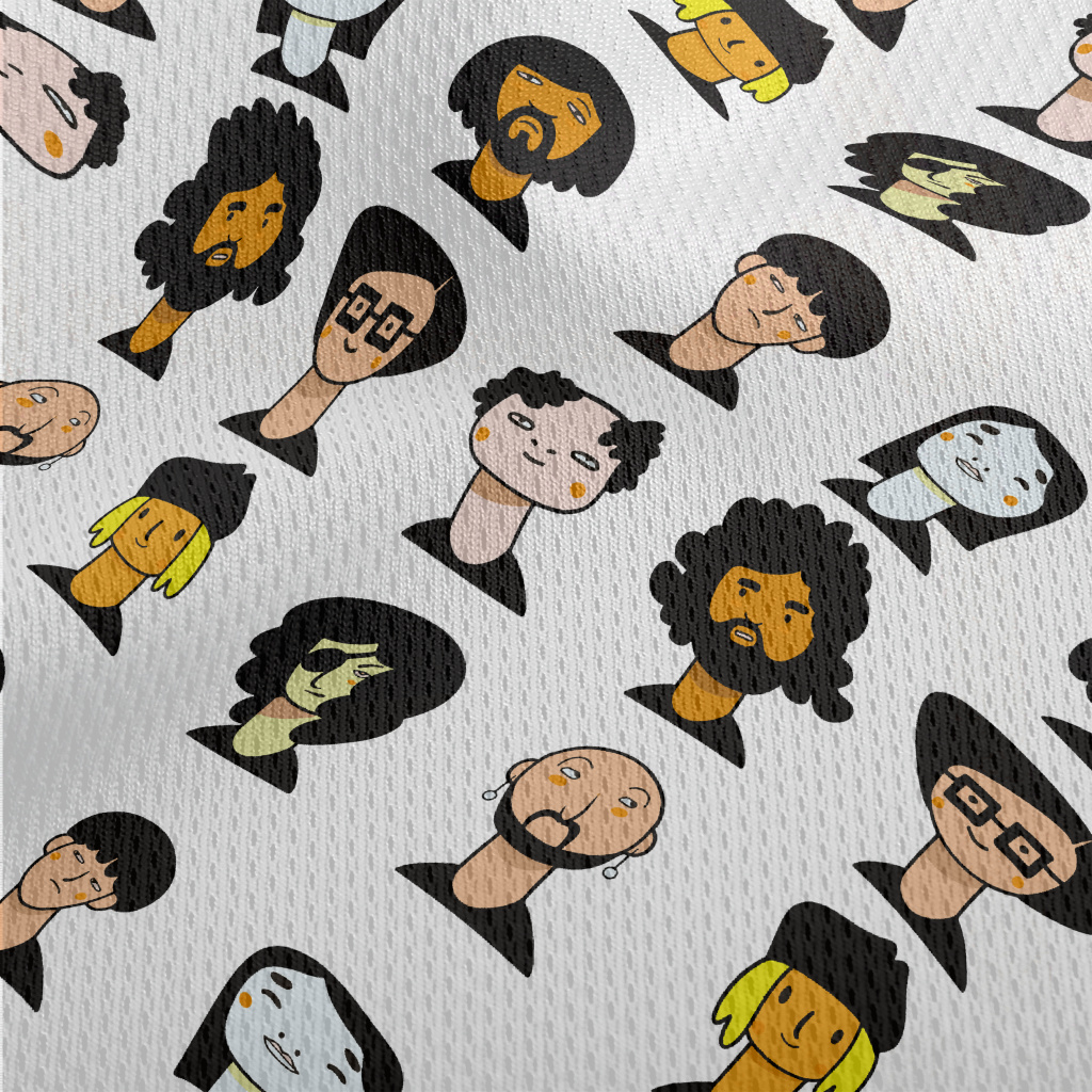 手繪人物頭像鳥眼布(幅寬160公分)