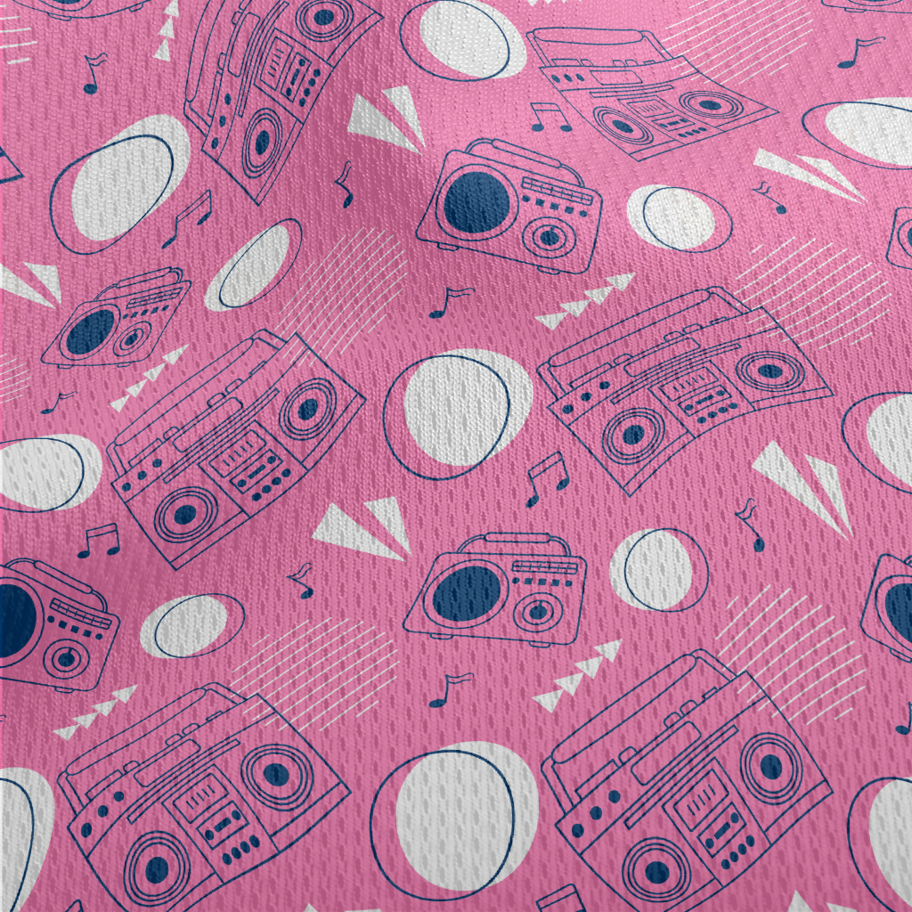 撥放音樂的收音機鳥眼布(幅寬160公分)