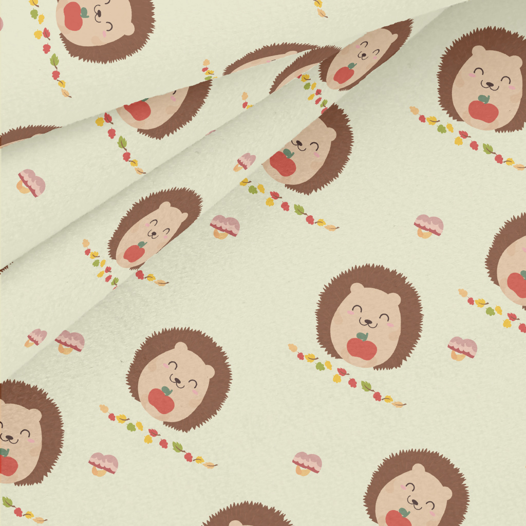 可愛刺蝟拿蘋果水晶絨(幅寬160公分)