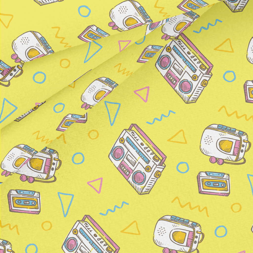 復古收音機和隨身聽水晶絨(幅寬160公分)