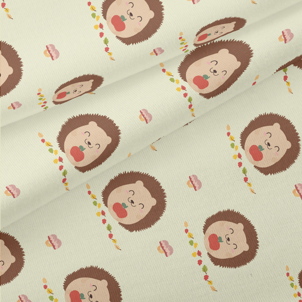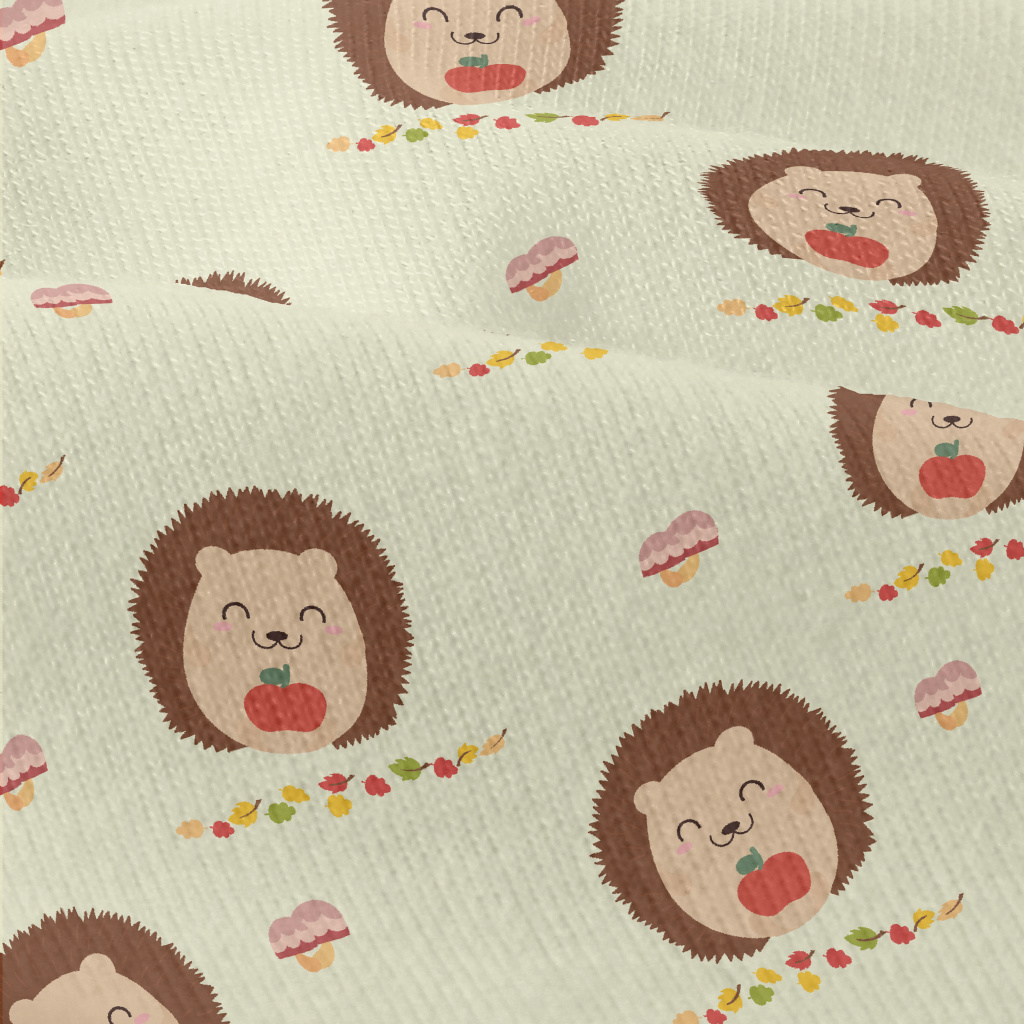可愛刺蝟拿蘋果仿棉布(幅寬150公分)