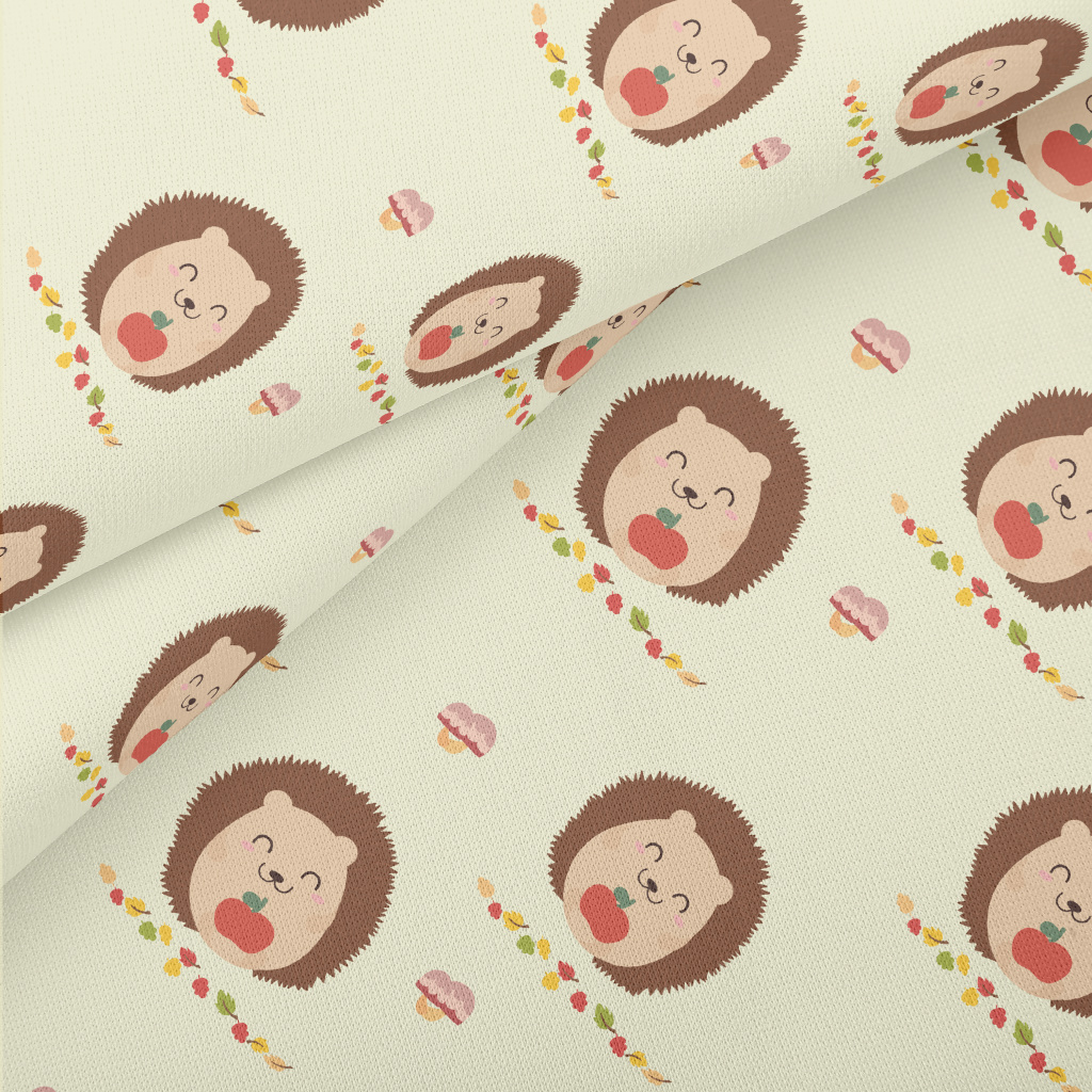 可愛刺蝟拿蘋果薄棉布(幅寬150公分)