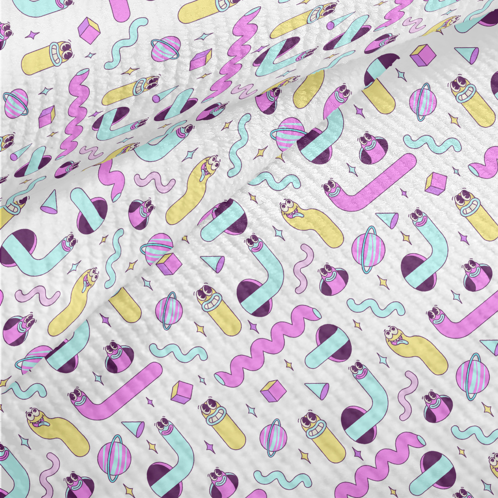 鮮明彩色蠕蟲和幾何形狀毛巾布(幅寬160公分)