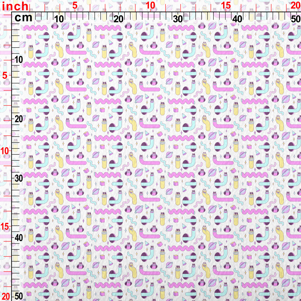 鮮明彩色蠕蟲和幾何形狀法蘭絨(幅寬150公分)