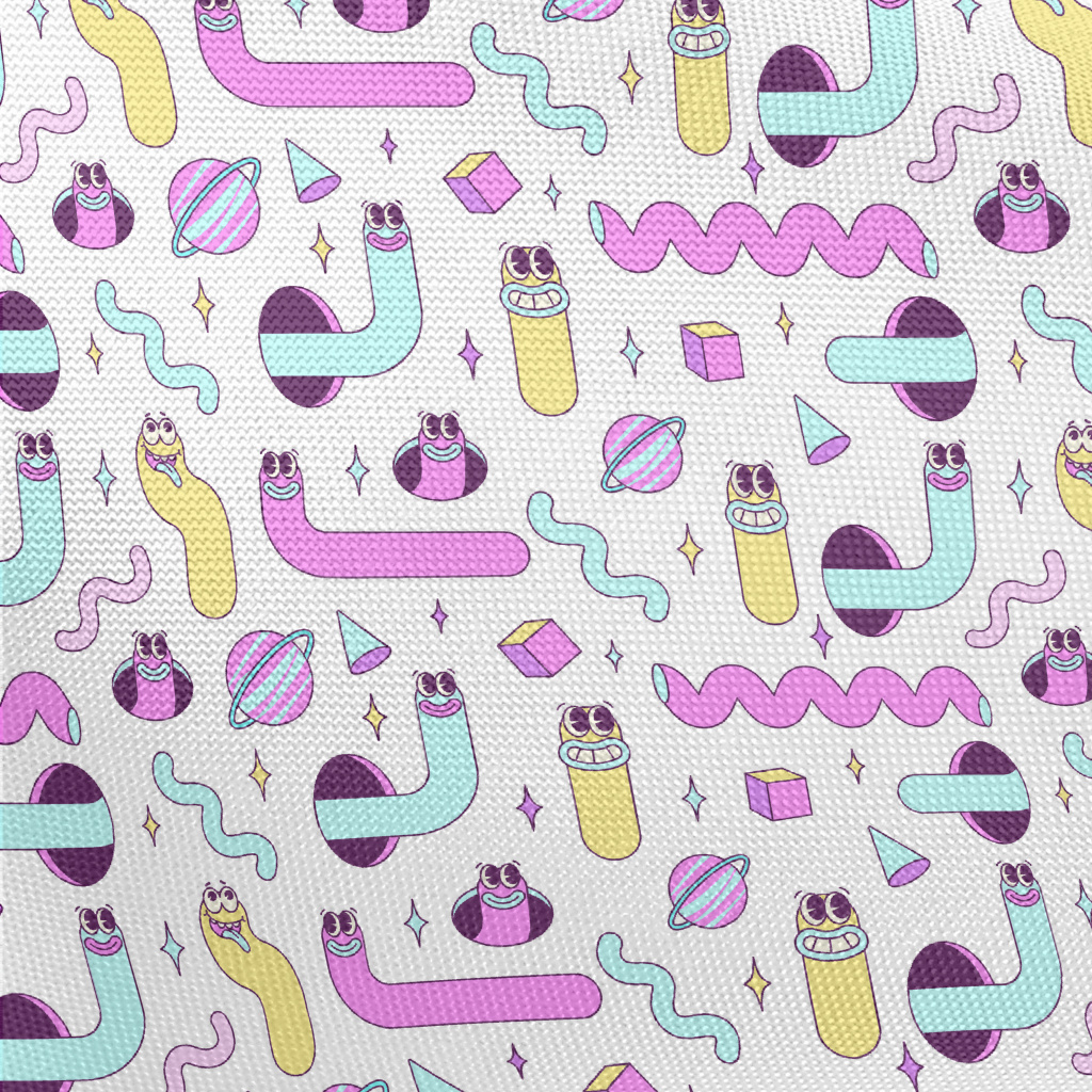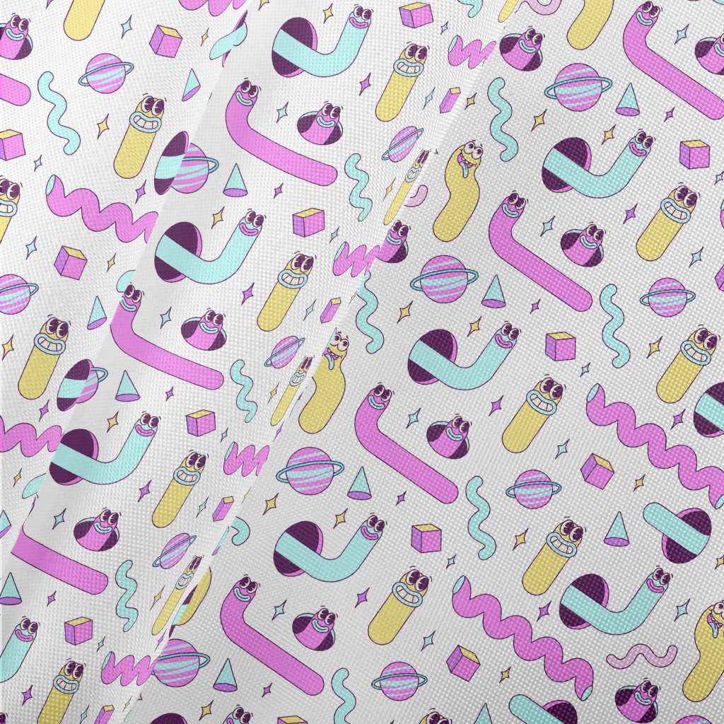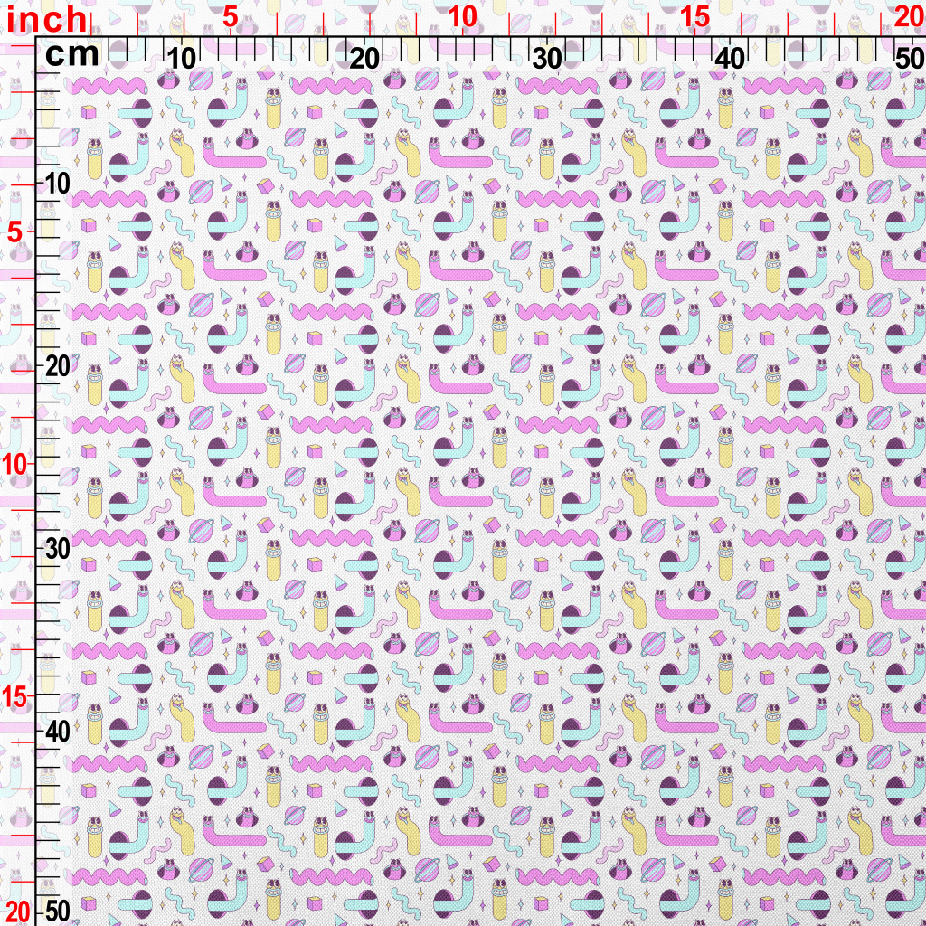 鮮明彩色蠕蟲和幾何形狀春亞紡(幅寬160公分)