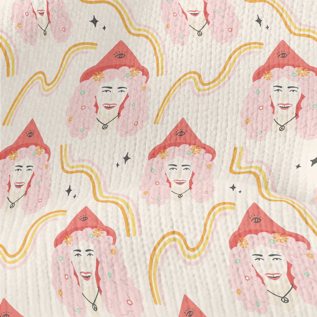 粉色女孩和彩虹仿毛衣布(幅寬150公分)