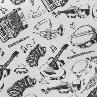 手繪速寫各種樂器厚棉布(幅寬150公分)
