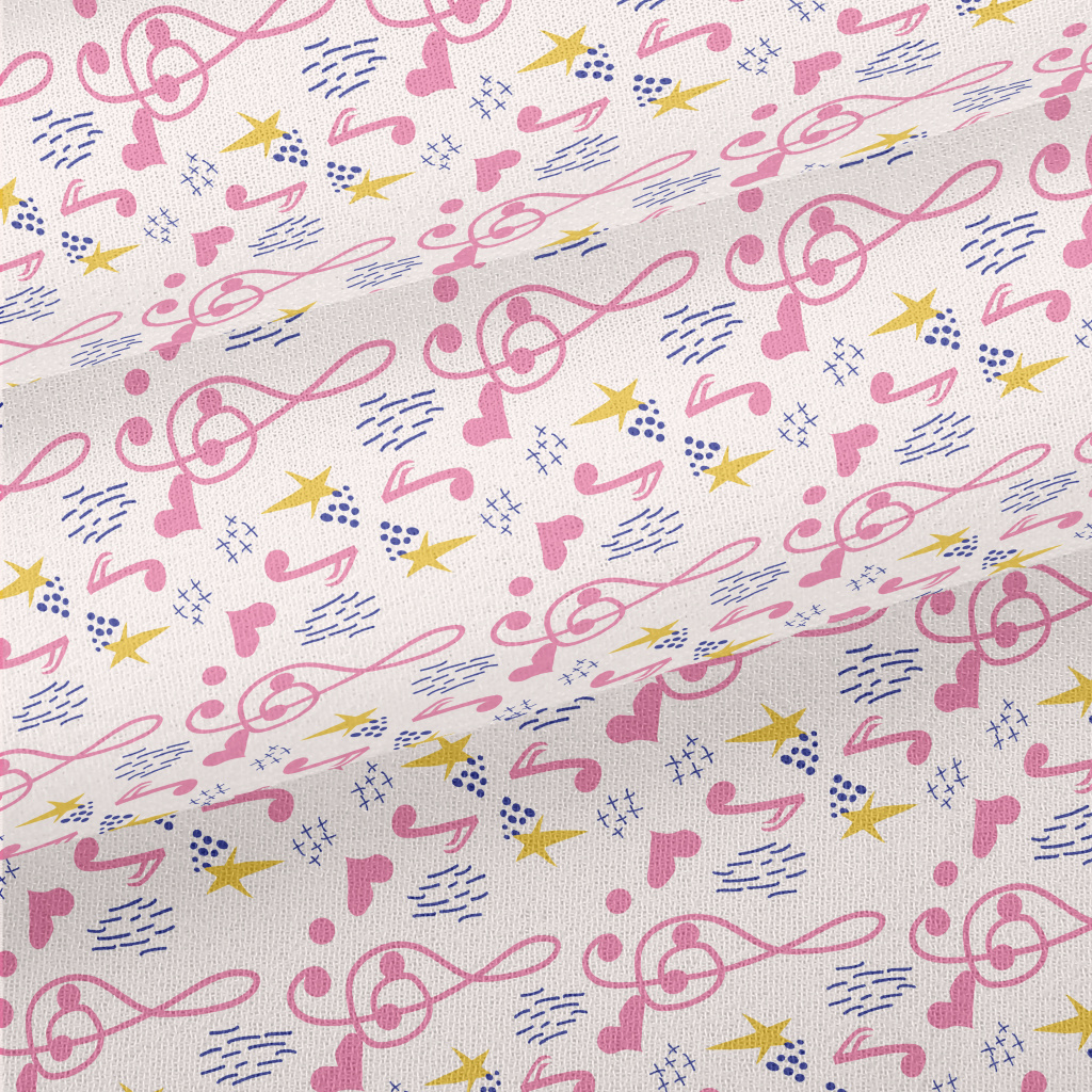 粉色音符和愛心星星雪紡布(幅寬150公分)