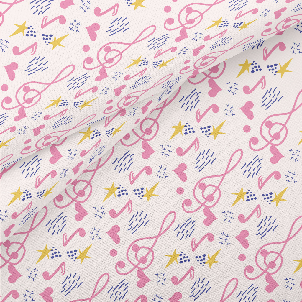 粉色音符和愛心星星薄棉布(幅寬150公分)