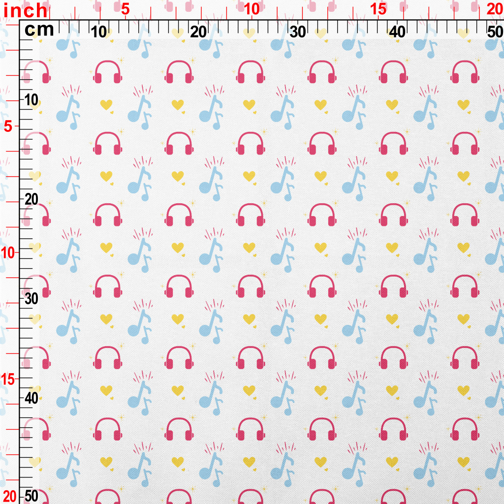耳機和音符愛心春亞紡(幅寬160公分)