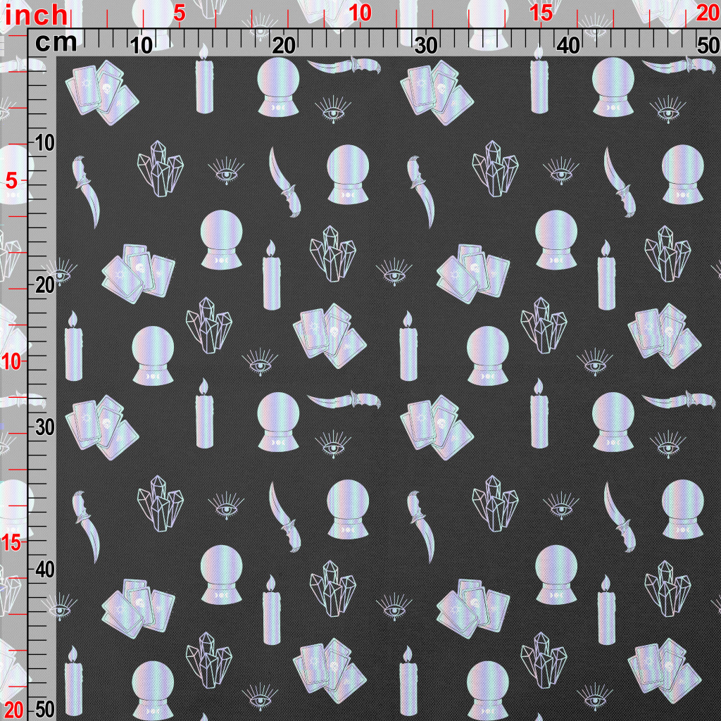 萬聖節水晶塔羅牌蠟燭圖案春亞紡(幅寬160公分)