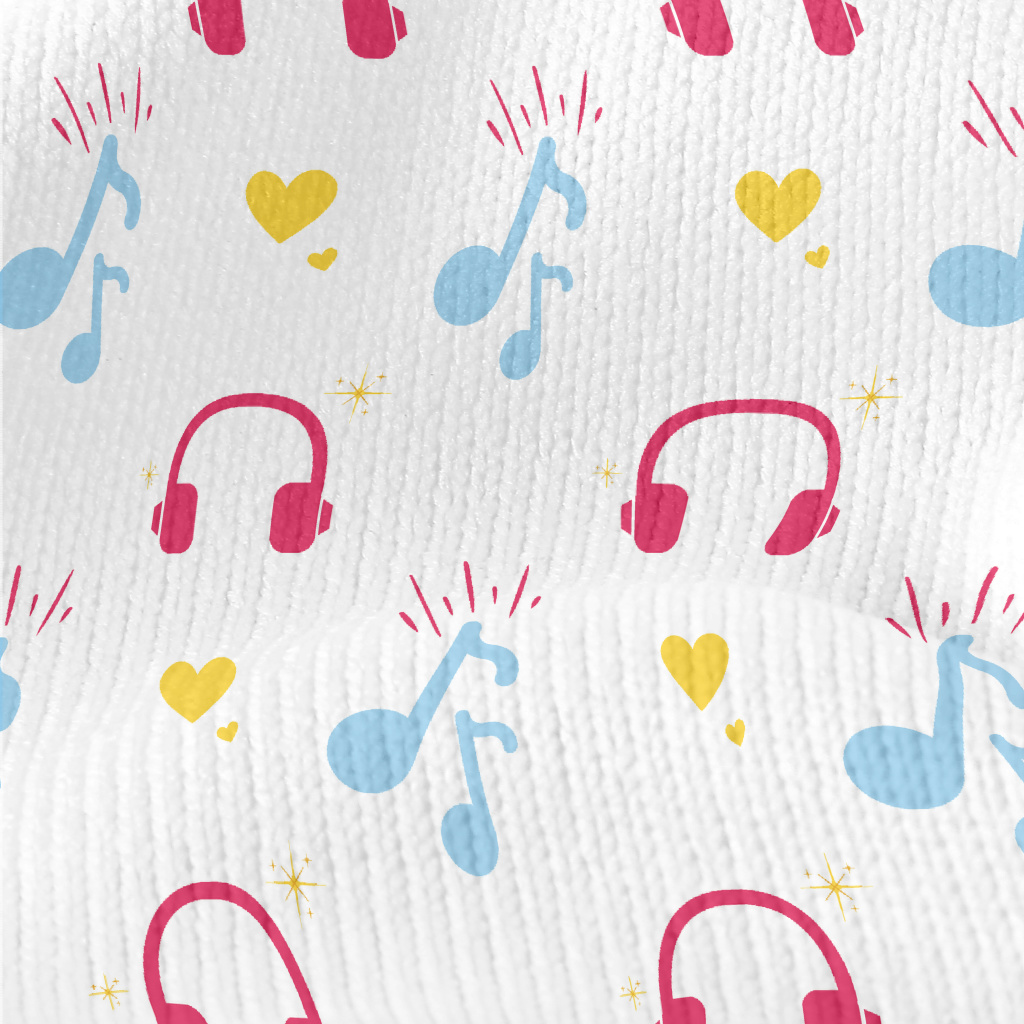 耳機和音符愛心仿毛衣布(幅寬150公分)