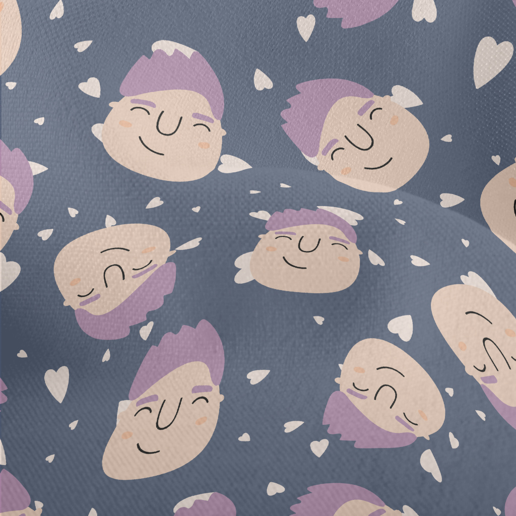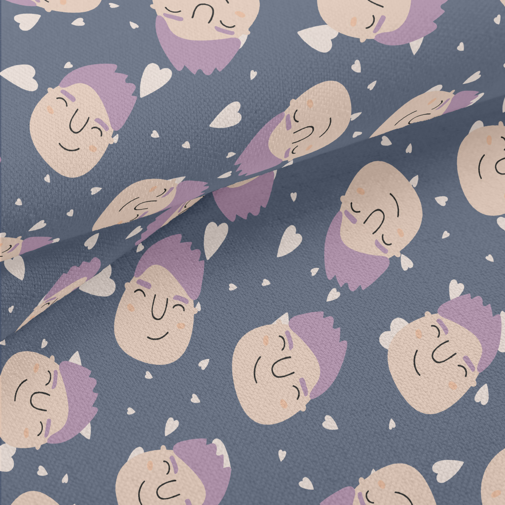 可愛的男生臉和愛心竹節麻(幅寬150公分)