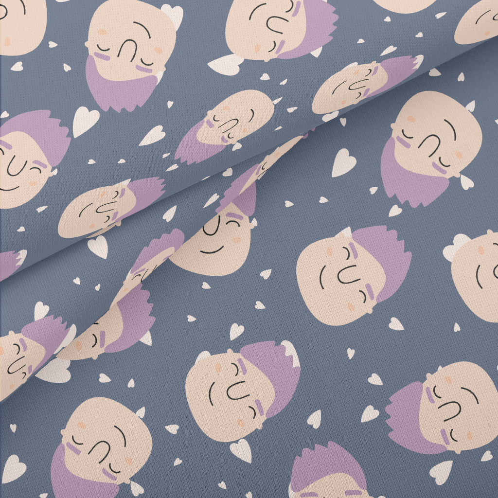 可愛的男生臉和愛心薄棉布(幅寬150公分)