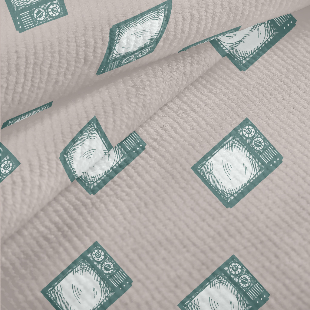 手繪畫風復古電視毛巾布(幅寬160公分)