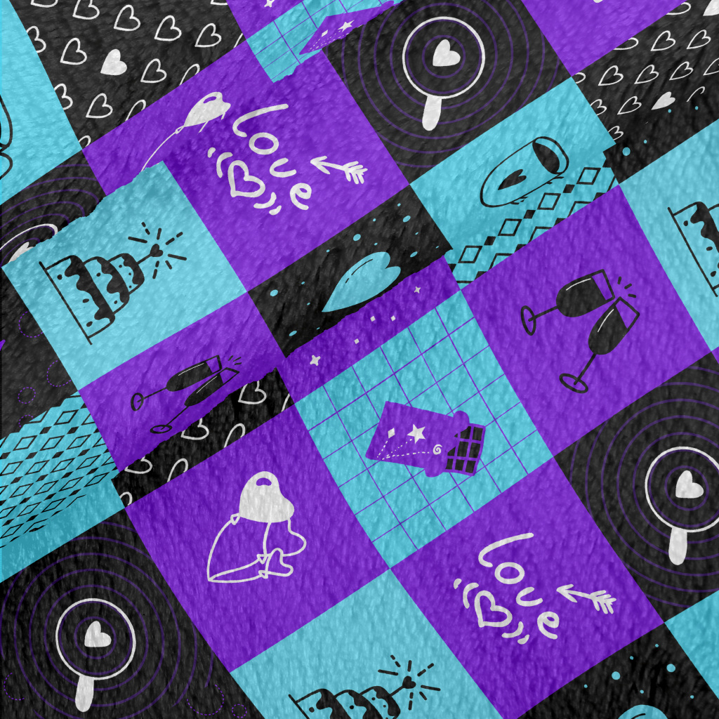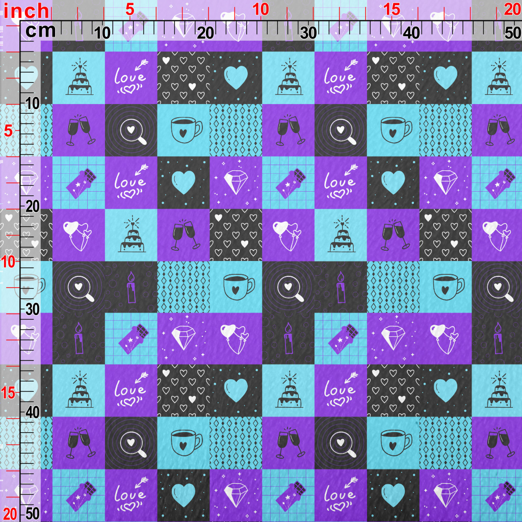 紫藍色愛心圖案格子法蘭絨(幅寬150公分)