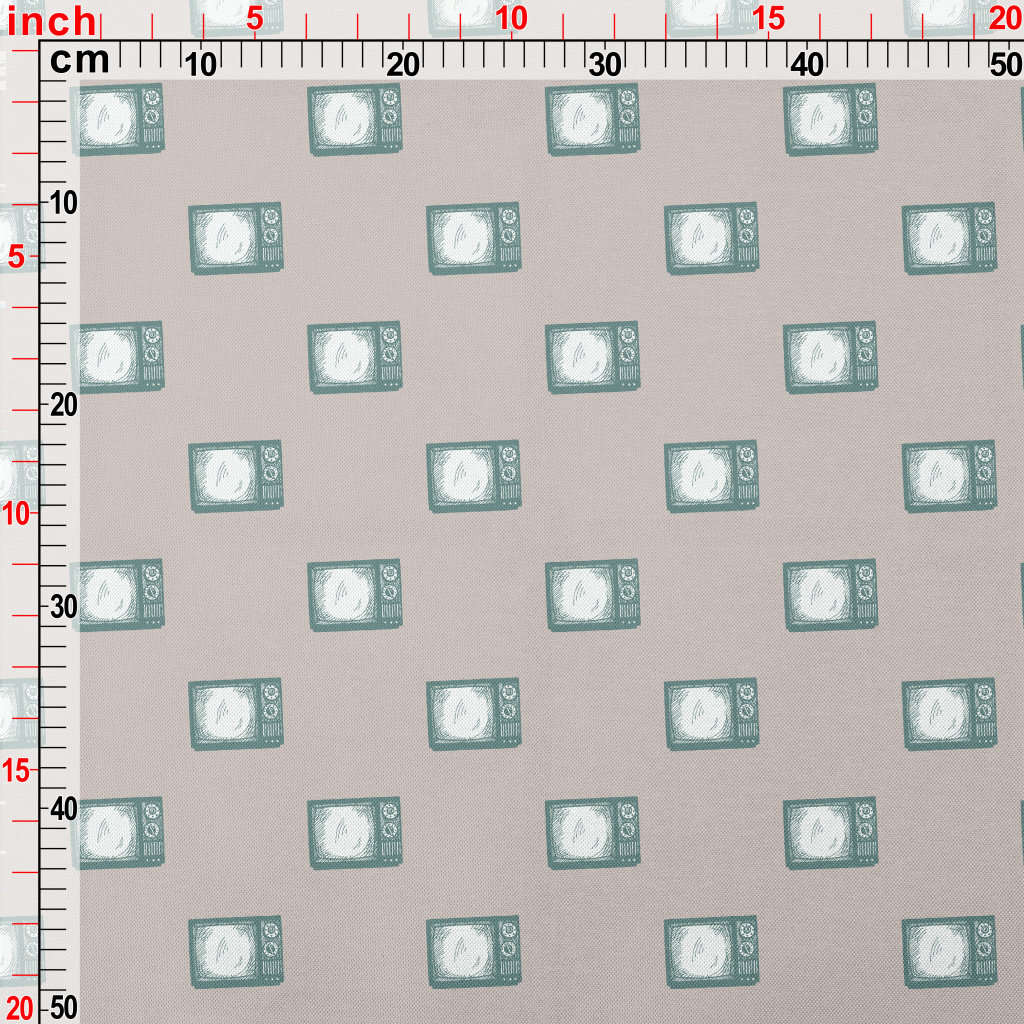 手繪畫風復古電視春亞紡(幅寬160公分)