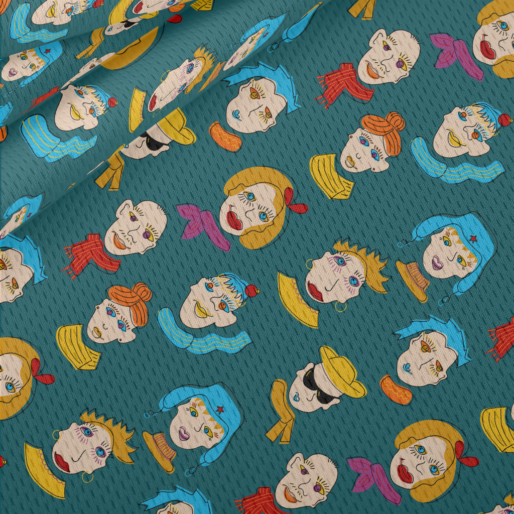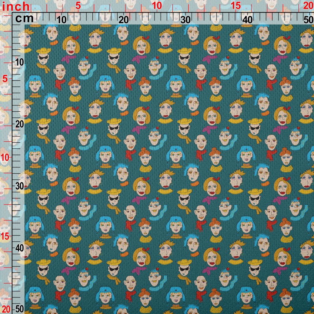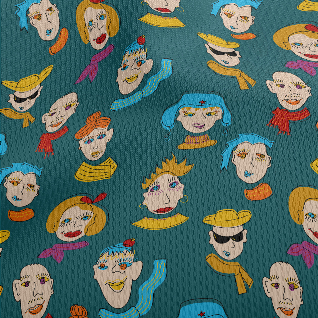 抽象人物臉孔鳥眼布(幅寬160公分)