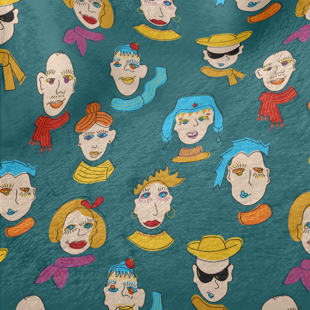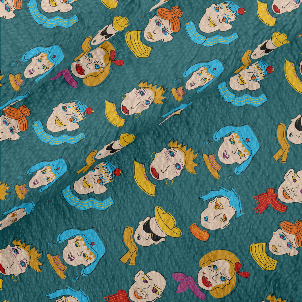 抽象人物臉孔法蘭絨(幅寬150公分)