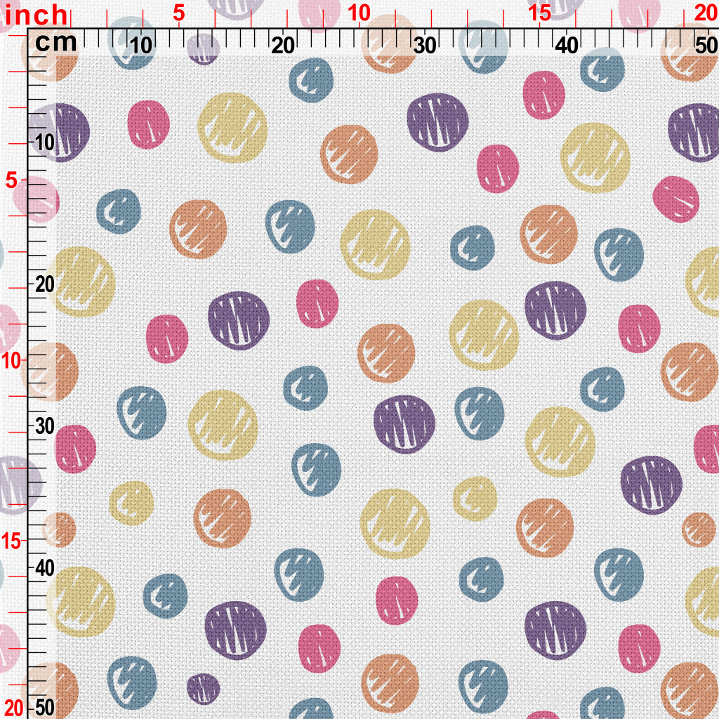 手繪塗鴉彩色圓點麻布(幅寬150公分)
