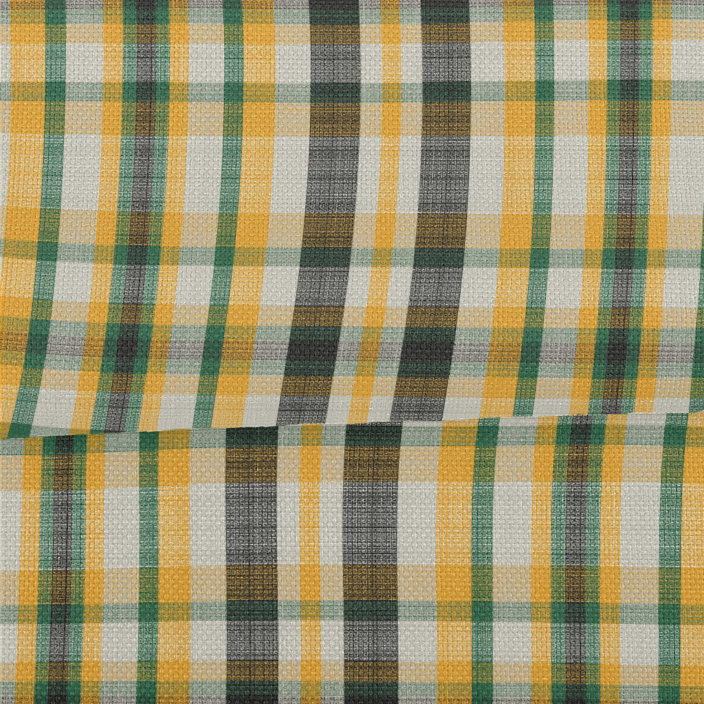 綠黃色紋理格子麻布(幅寬150公分)