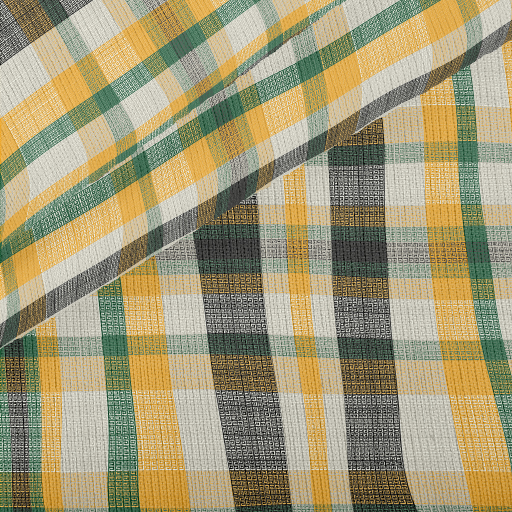 綠黃色紋理格子仿毛衣布(幅寬150公分)