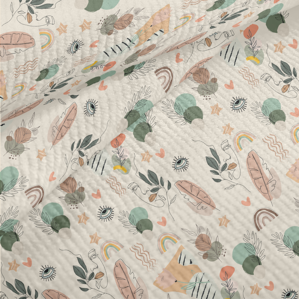 現代抽象花朵側臉植物毛巾布(幅寬160公分)