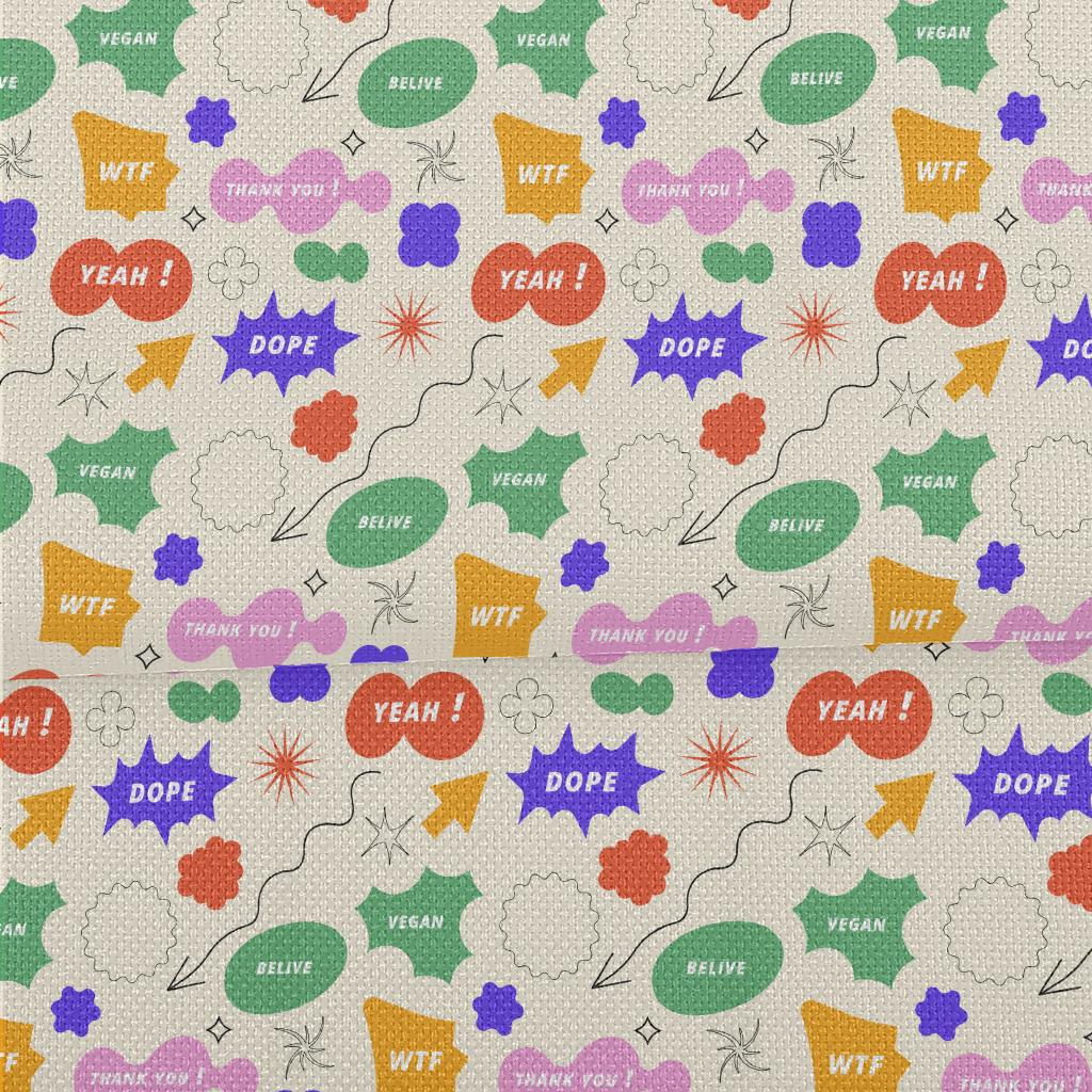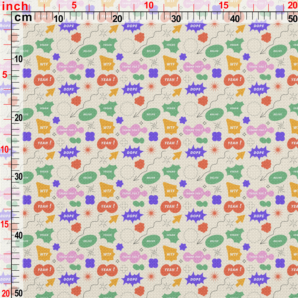 正面英文和幾何圖形麻布(幅寬150公分)