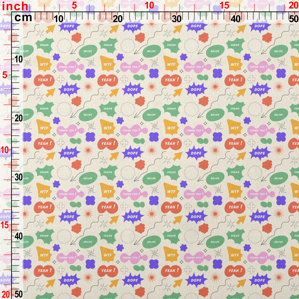 正面英文和幾何圖形仿棉布(幅寬150公分)