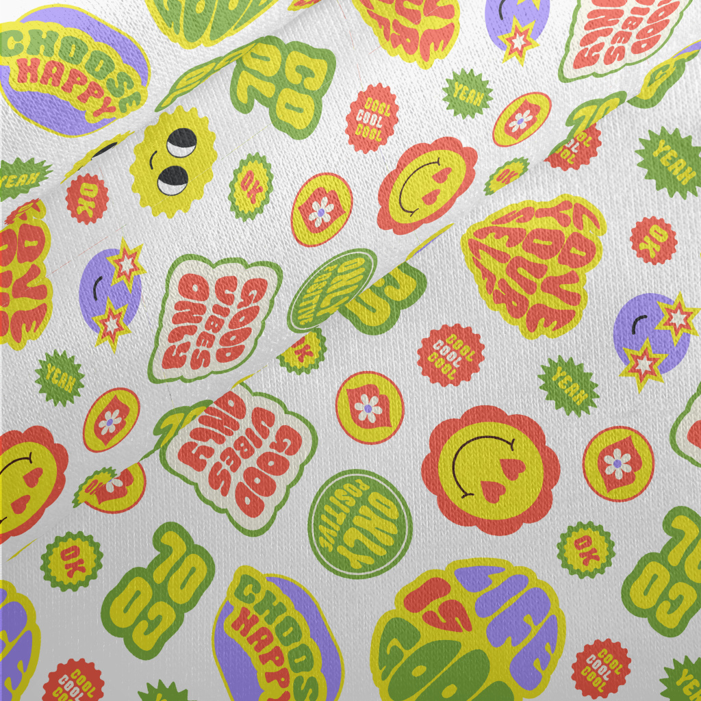 美式卡通文字和表情刷毛布(幅寬150公分)