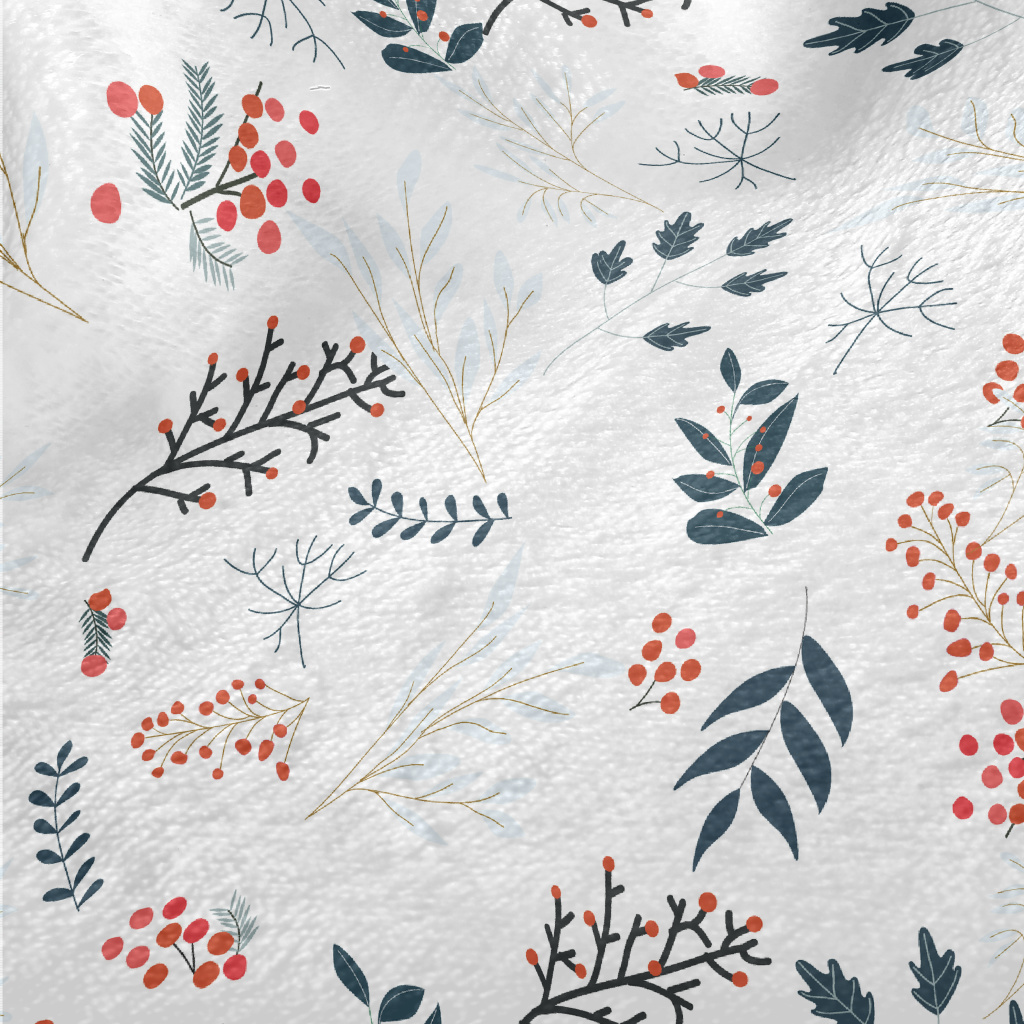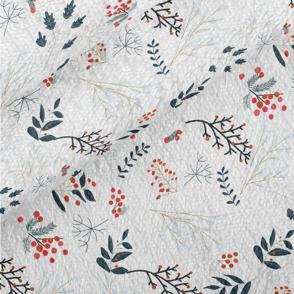 簡約冬季植物果實法蘭絨(幅寬150公分)