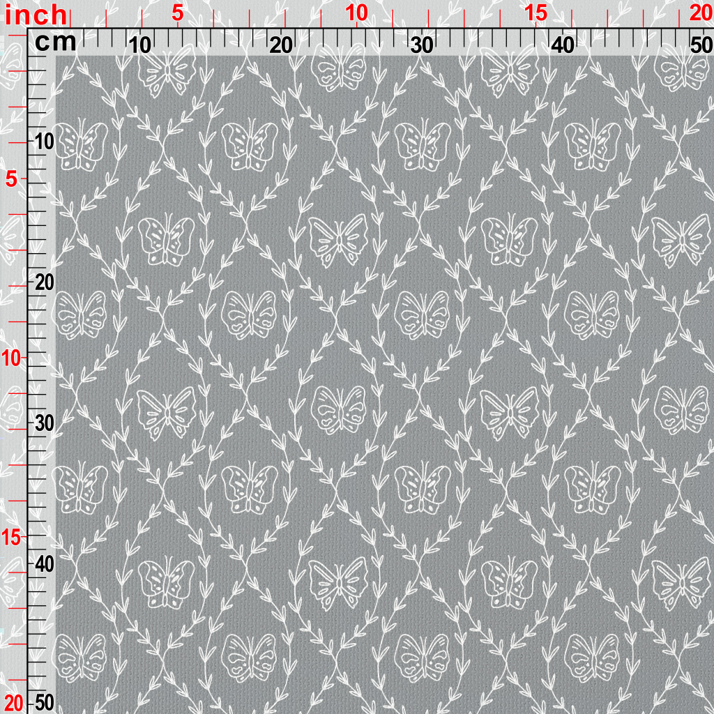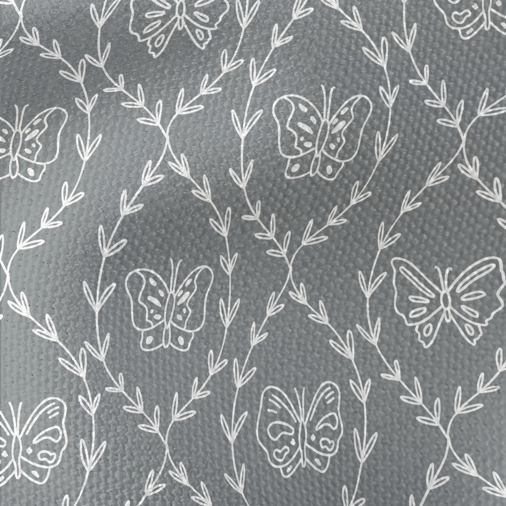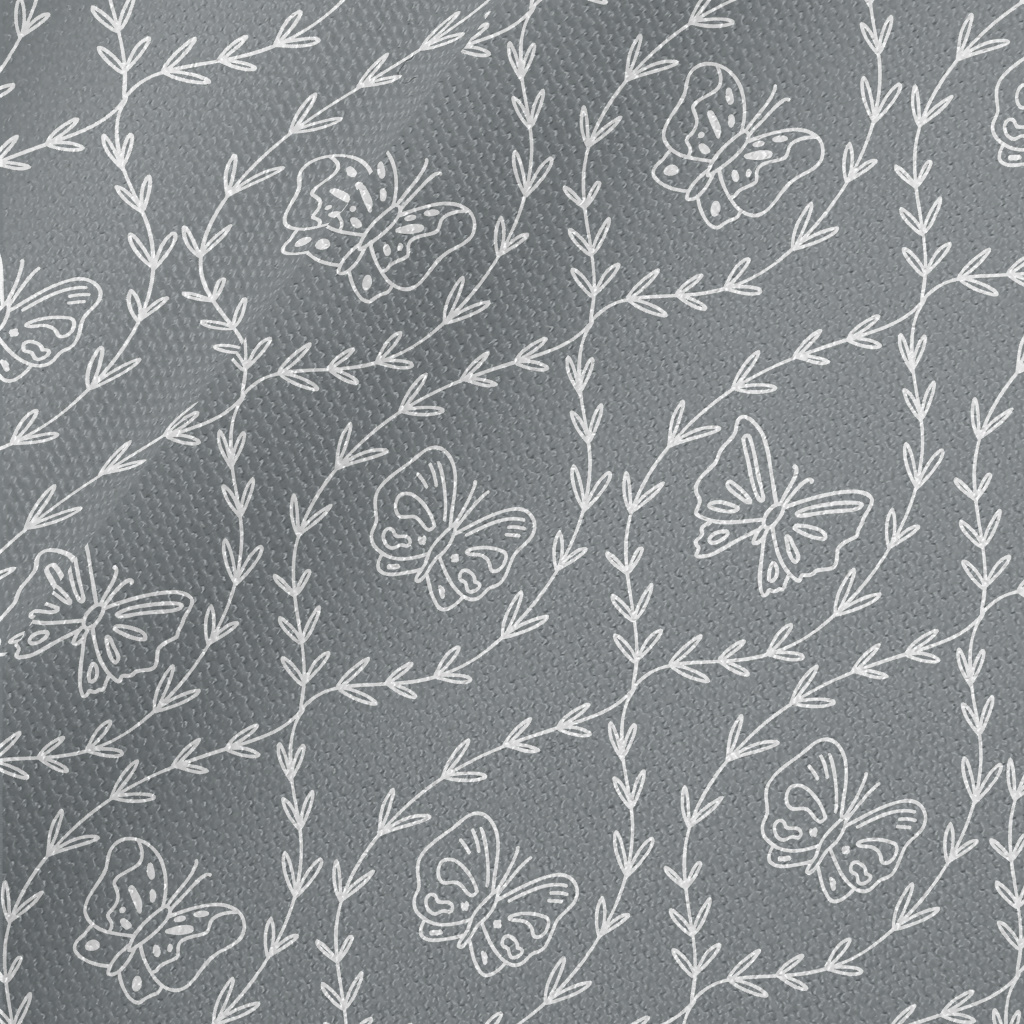 白色線條樹枝和蝴蝶帆布(幅寬150公分)