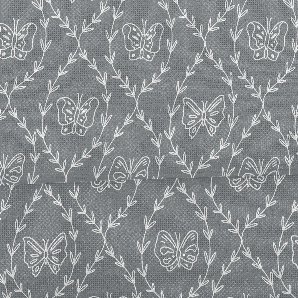 白色線條樹枝和蝴蝶麻布(幅寬150公分)