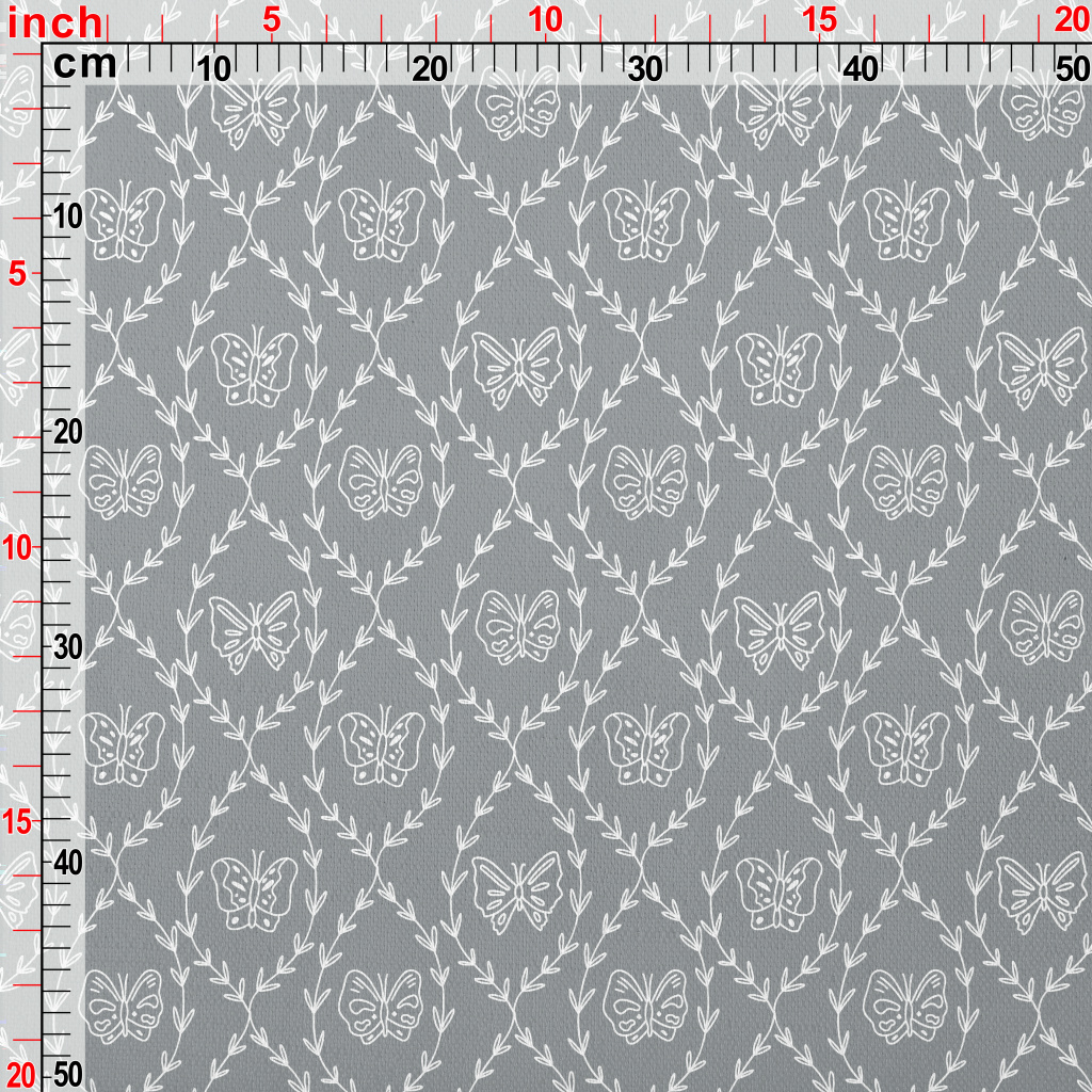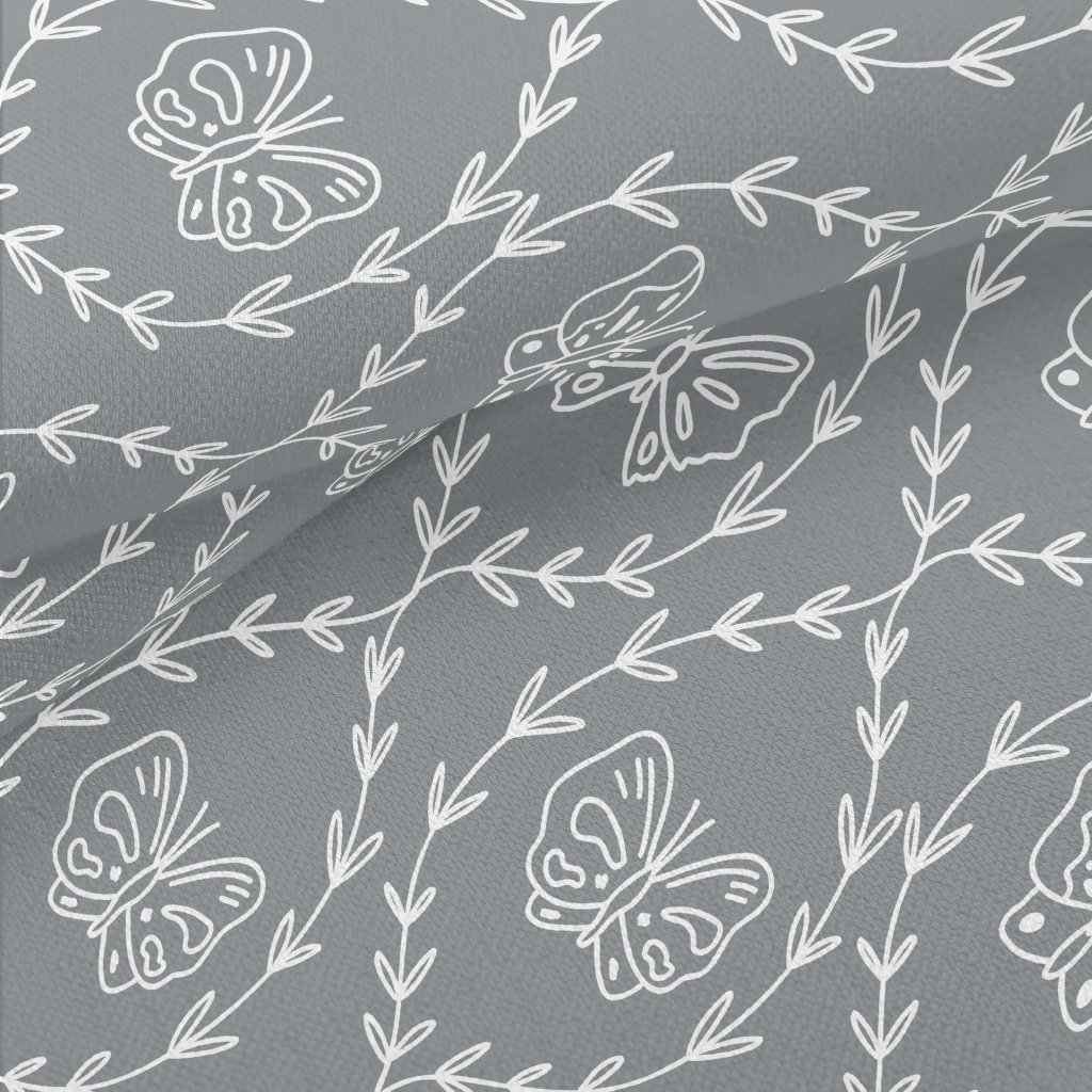 白色線條樹枝和蝴蝶竹節麻(幅寬150公分)