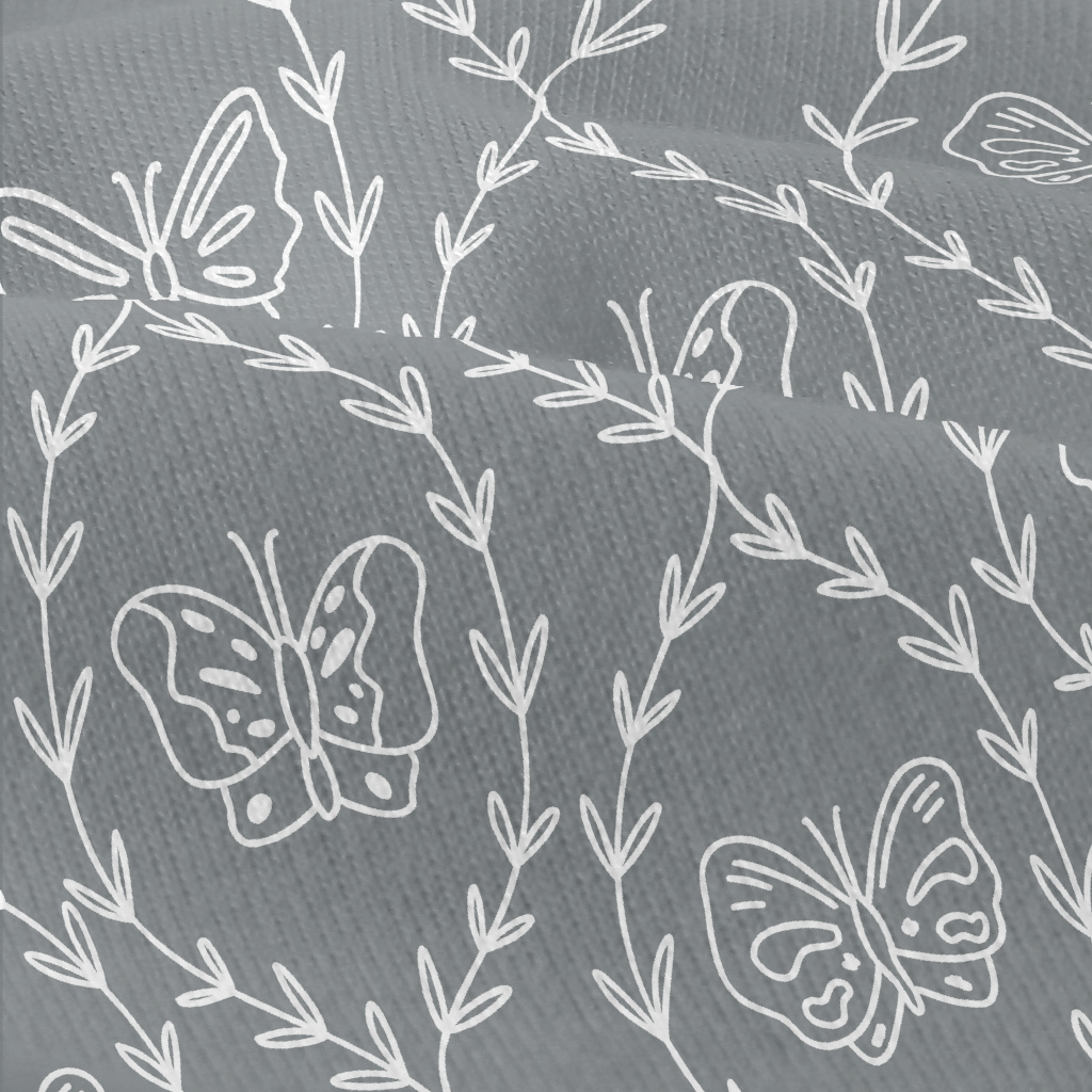 白色線條樹枝和蝴蝶仿棉布(幅寬150公分)