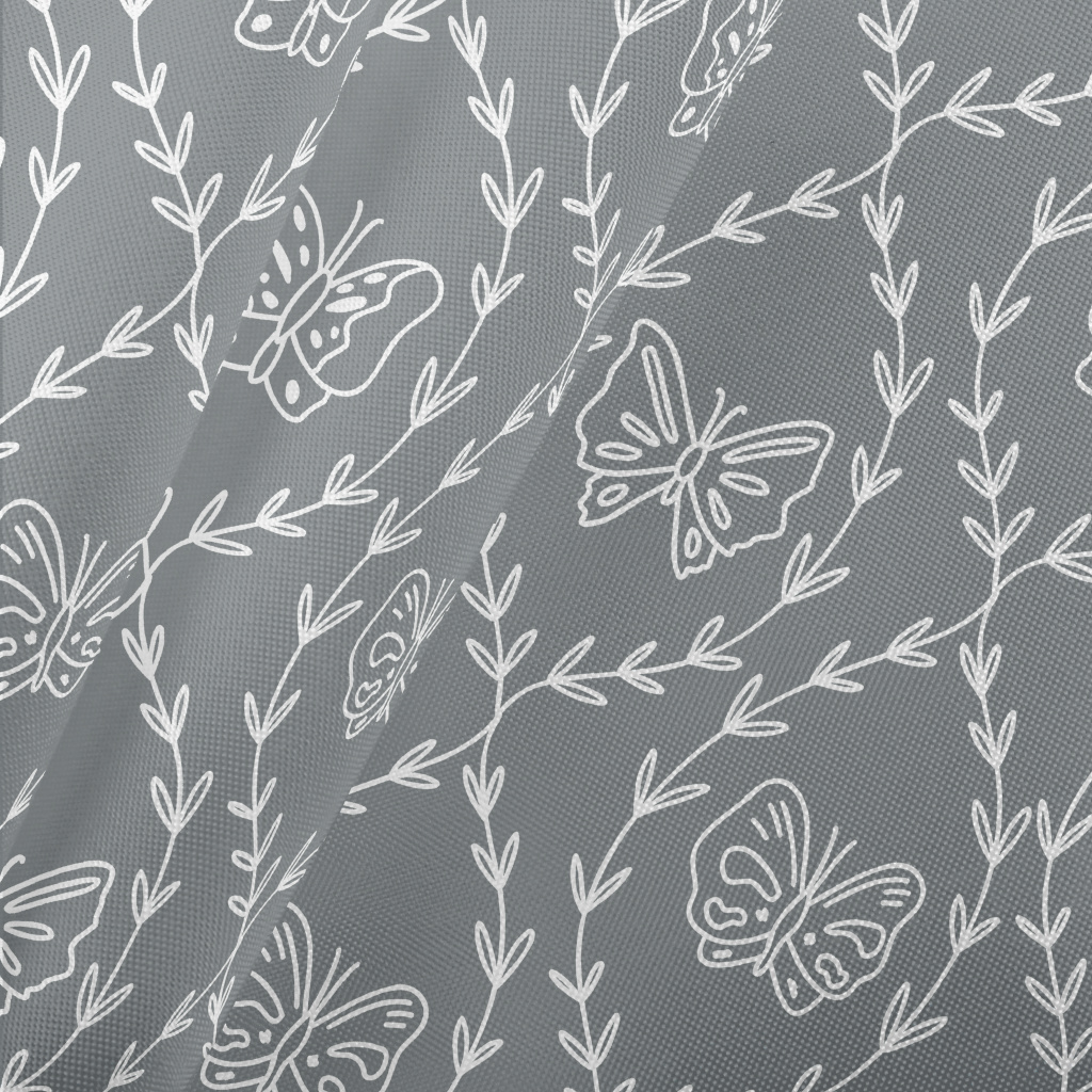 白色線條樹枝和蝴蝶春亞紡(幅寬160公分)