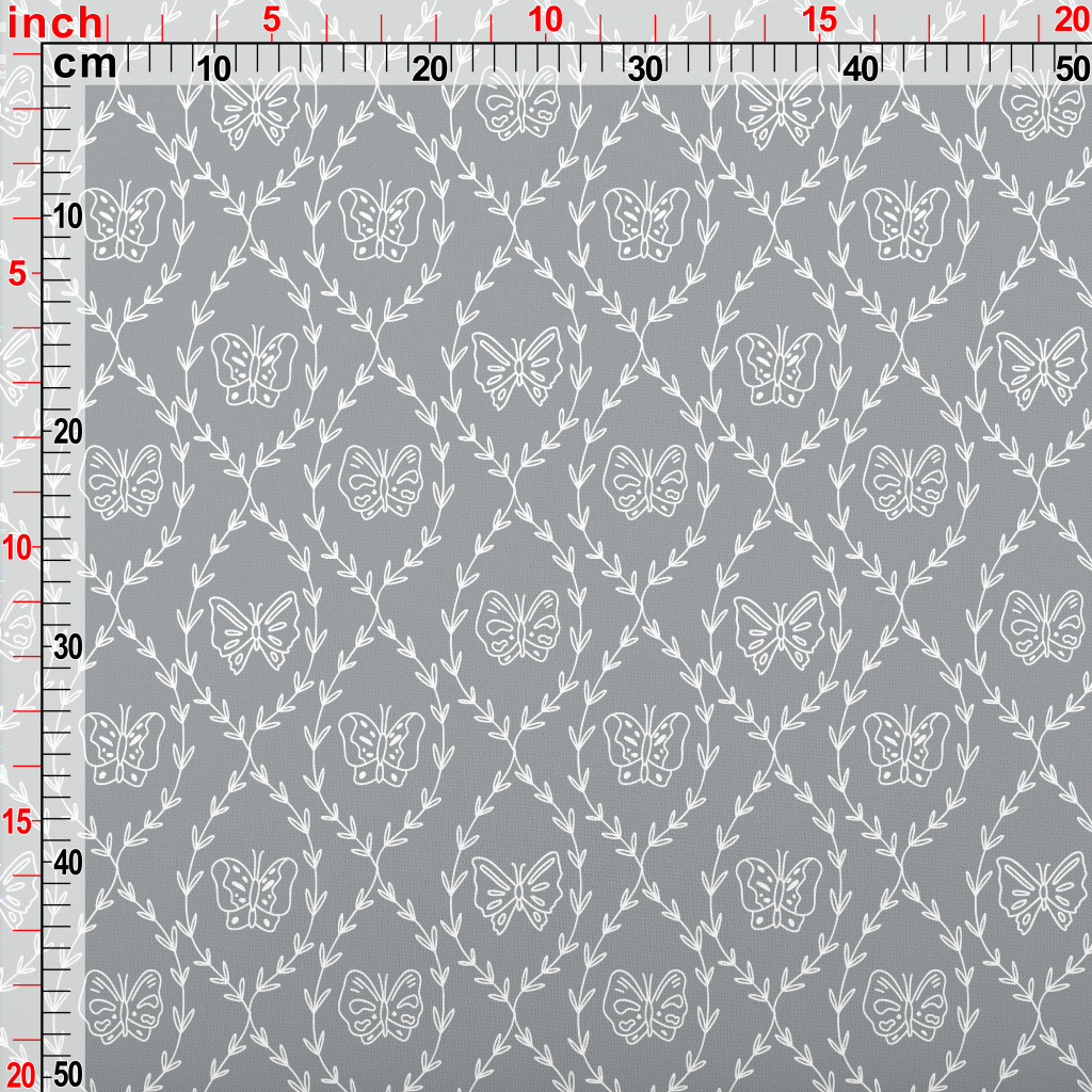 白色線條樹枝和蝴蝶薄棉布(幅寬150公分)