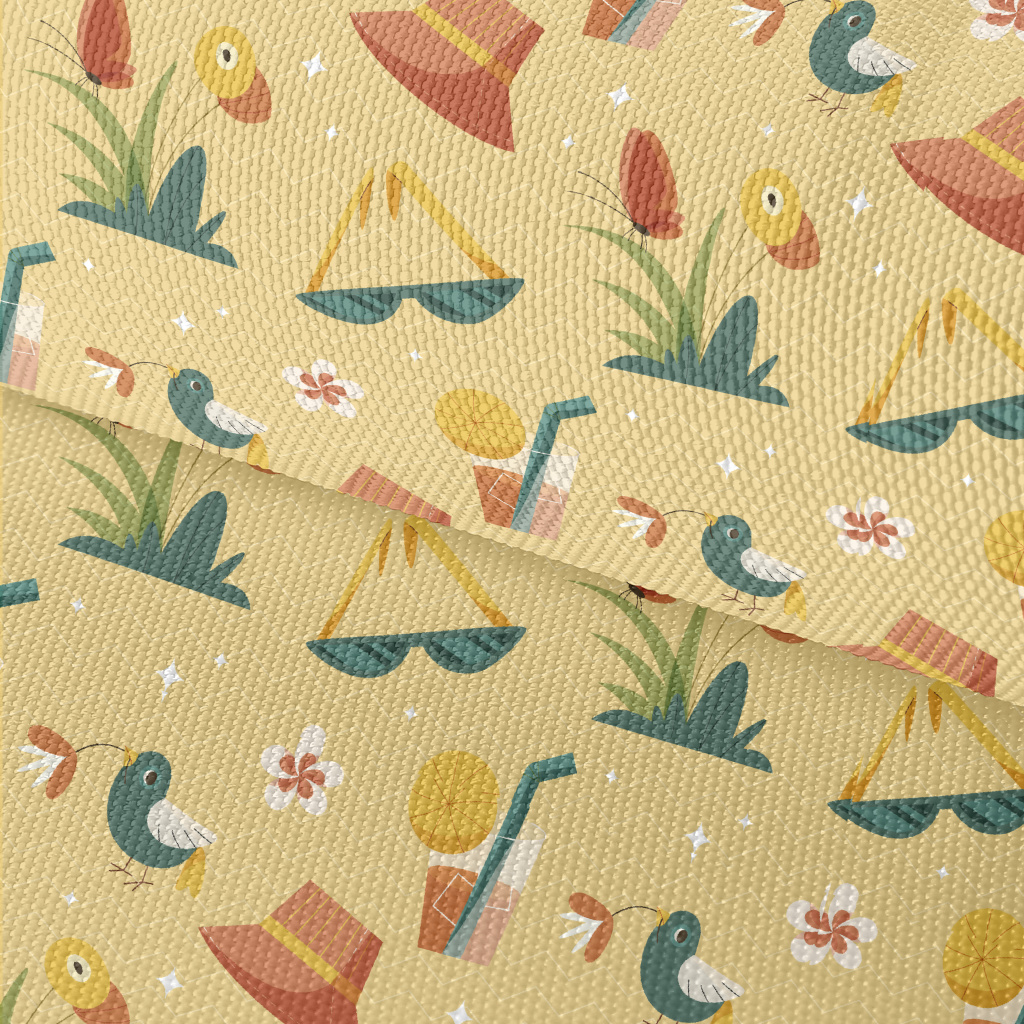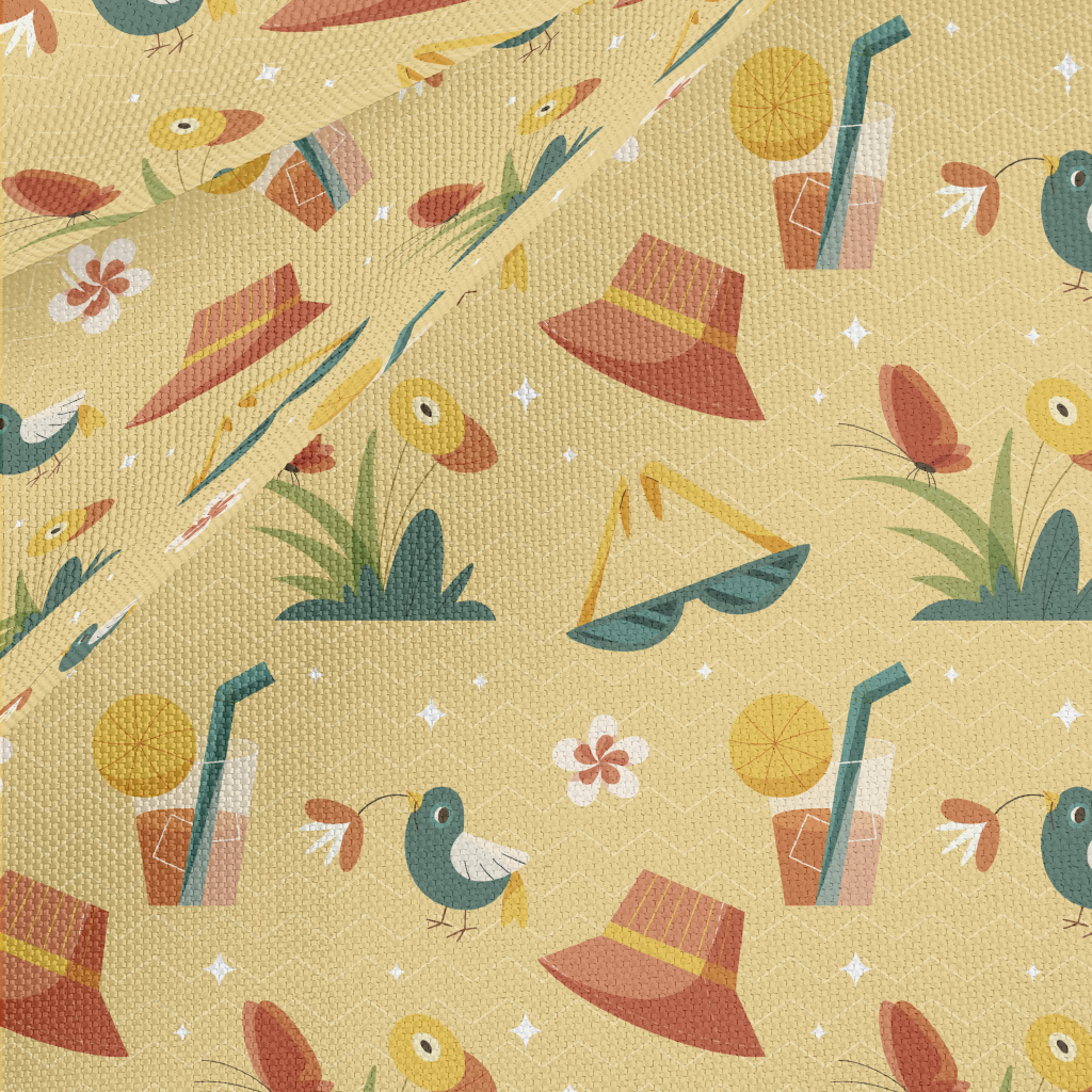 手繪小鳥蝴蝶果汁帽子花朵牛津布(幅寬150公分)