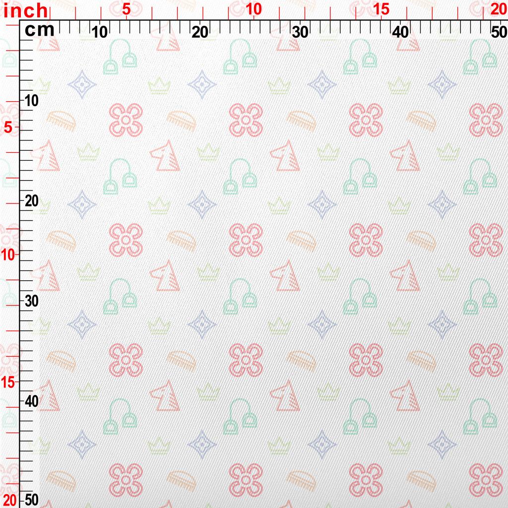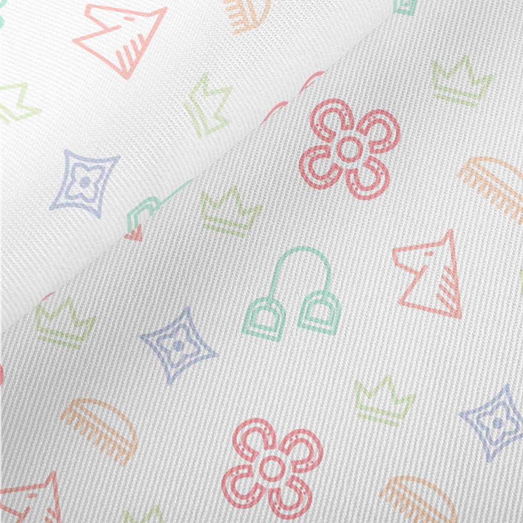 彩色線條皇冠梳子花朵斜紋布(幅寬150公分)