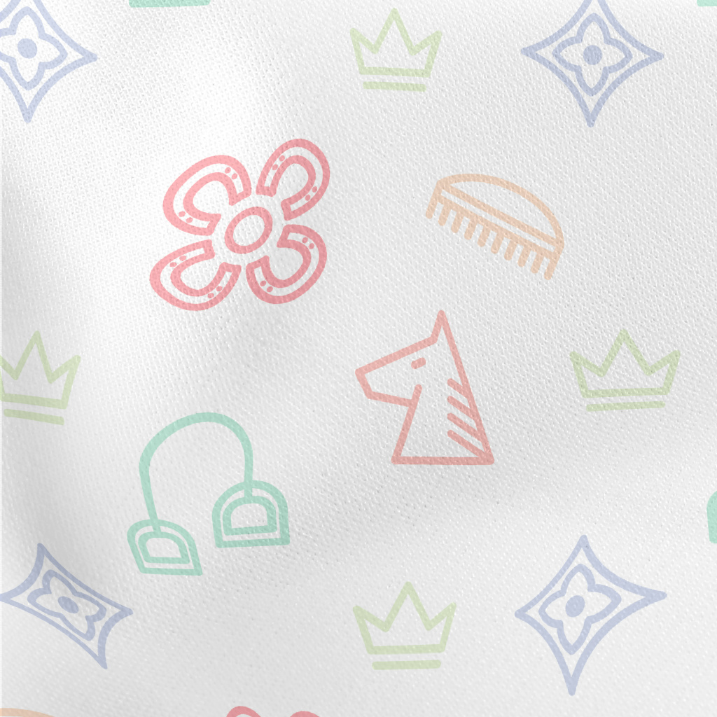 彩色線條皇冠梳子花朵羅馬布(幅寬160公分)
