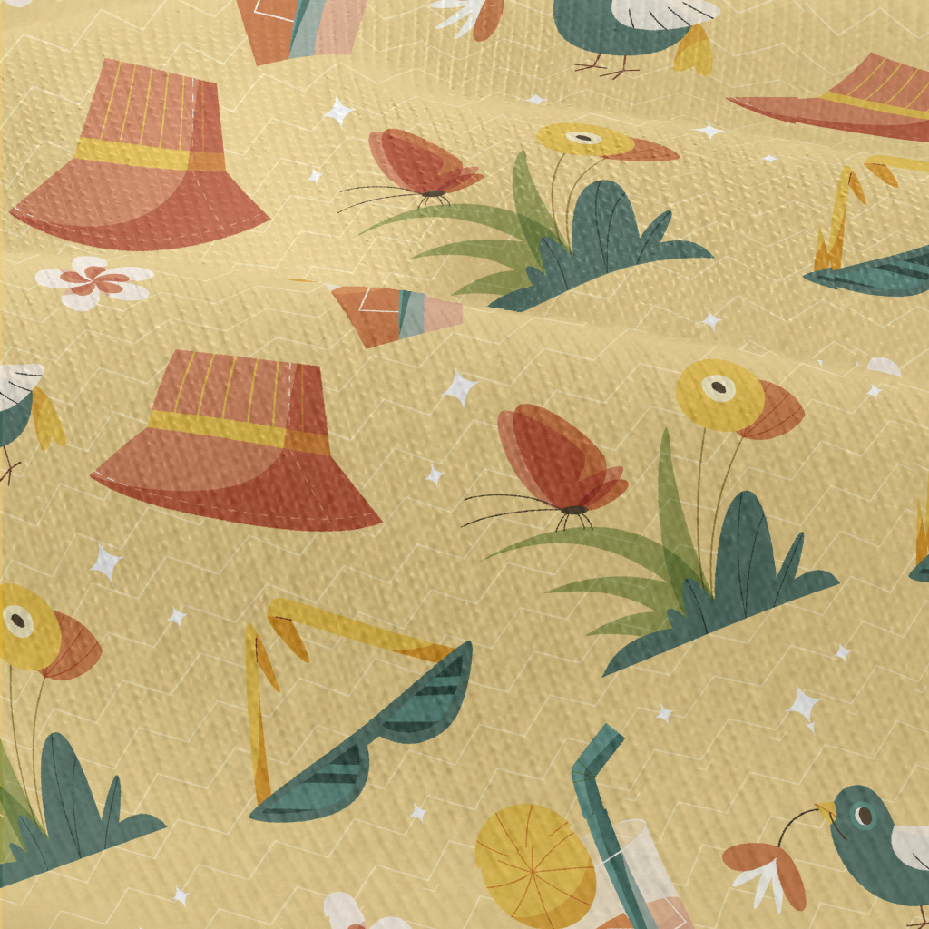 手繪小鳥蝴蝶果汁帽子花朵仿棉布(幅寬150公分)