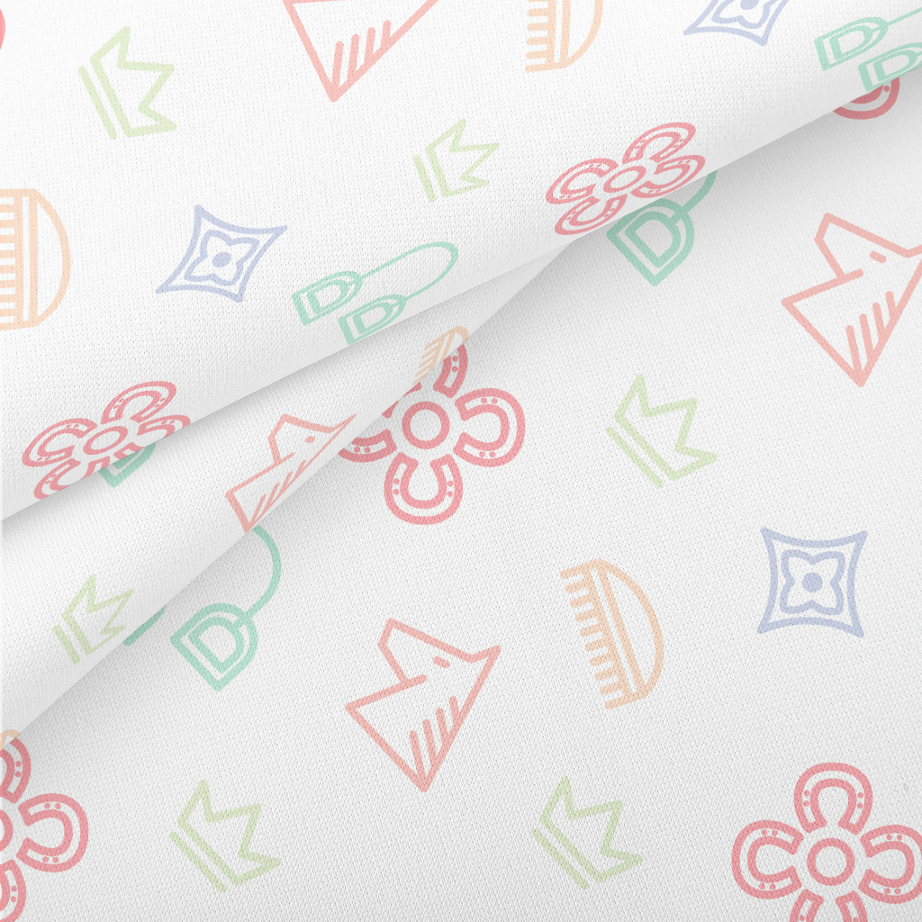 彩色線條皇冠梳子花朵薄棉布(幅寬150公分)